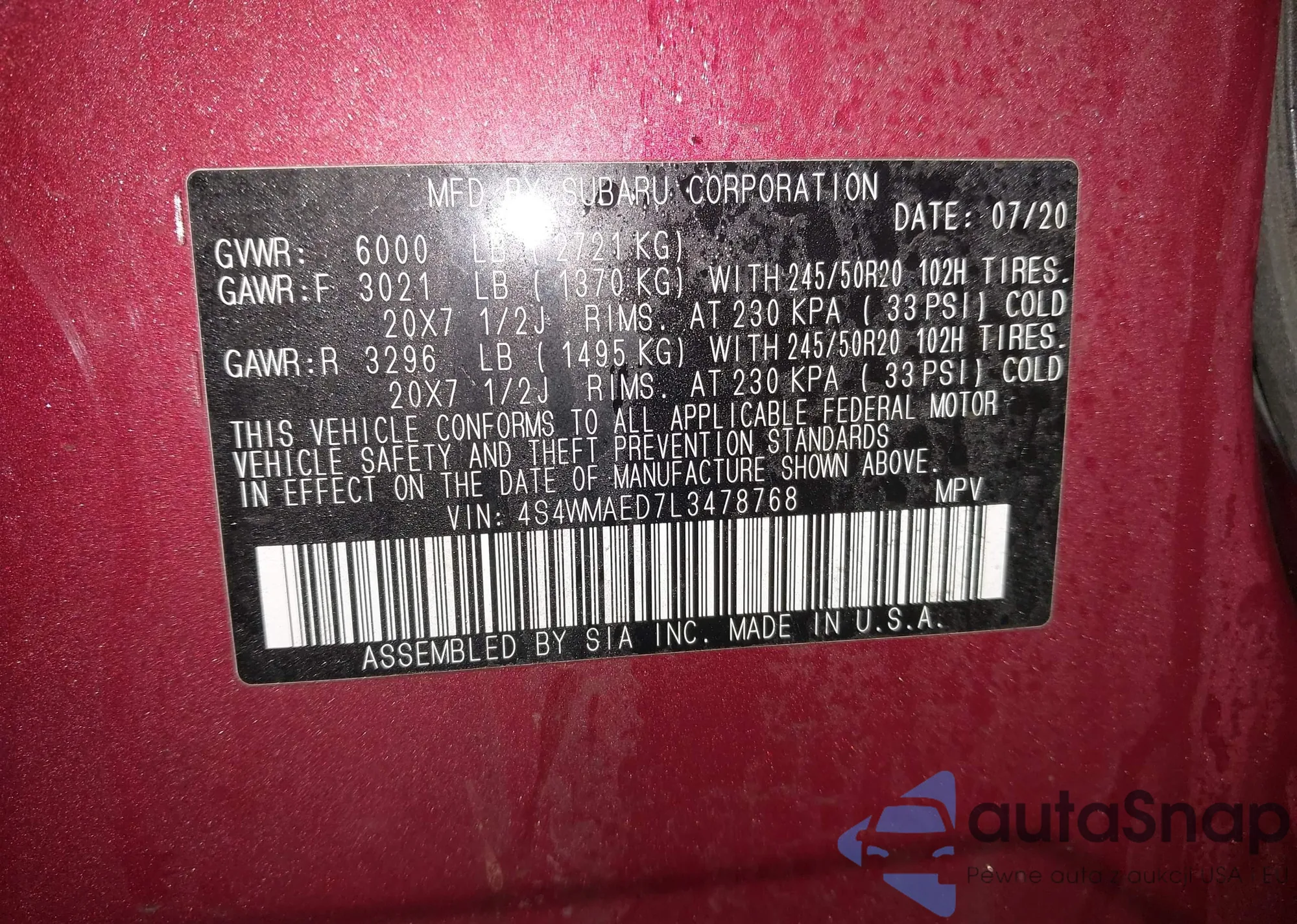 • VIN: 4S4WMAED7L3478768