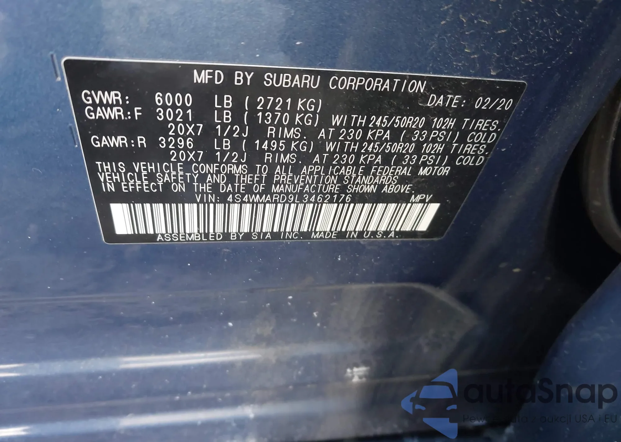 The car Subaru Ascent 2020 (VIN 4S4WMARD9L3462176) has not been auctioned before. The documents are clean, and the mileage matches or is below the market average. Sold by an insurance company – we recommend purchase. Delivery to the port will take approx. 6–8 weeks.