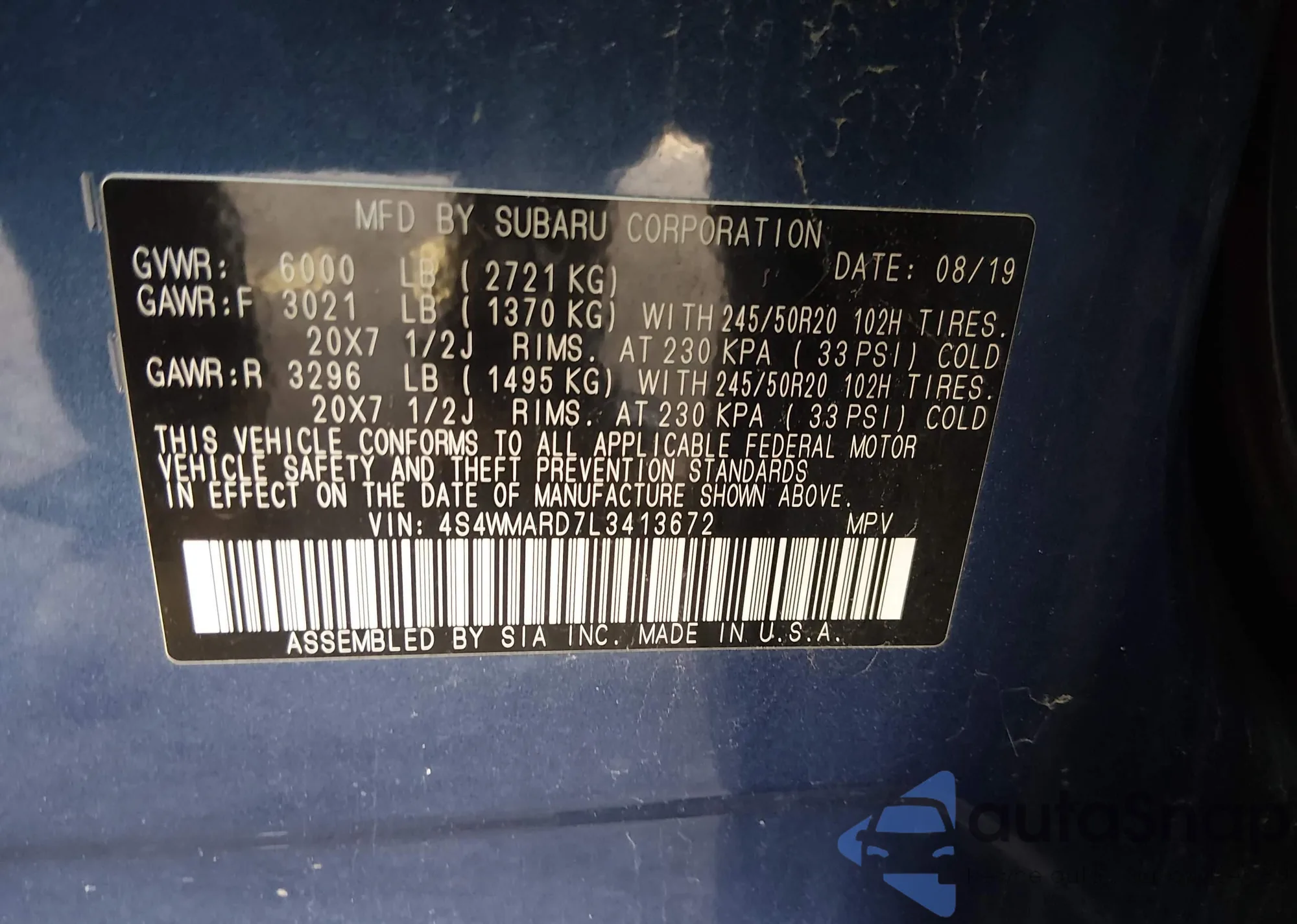 The car Subaru Ascent 2020 (VIN 4S4WMARD7L3413672) is sold by an unverified seller. We recommend checking the Carfax report and confirming registration possibilities before purchase.