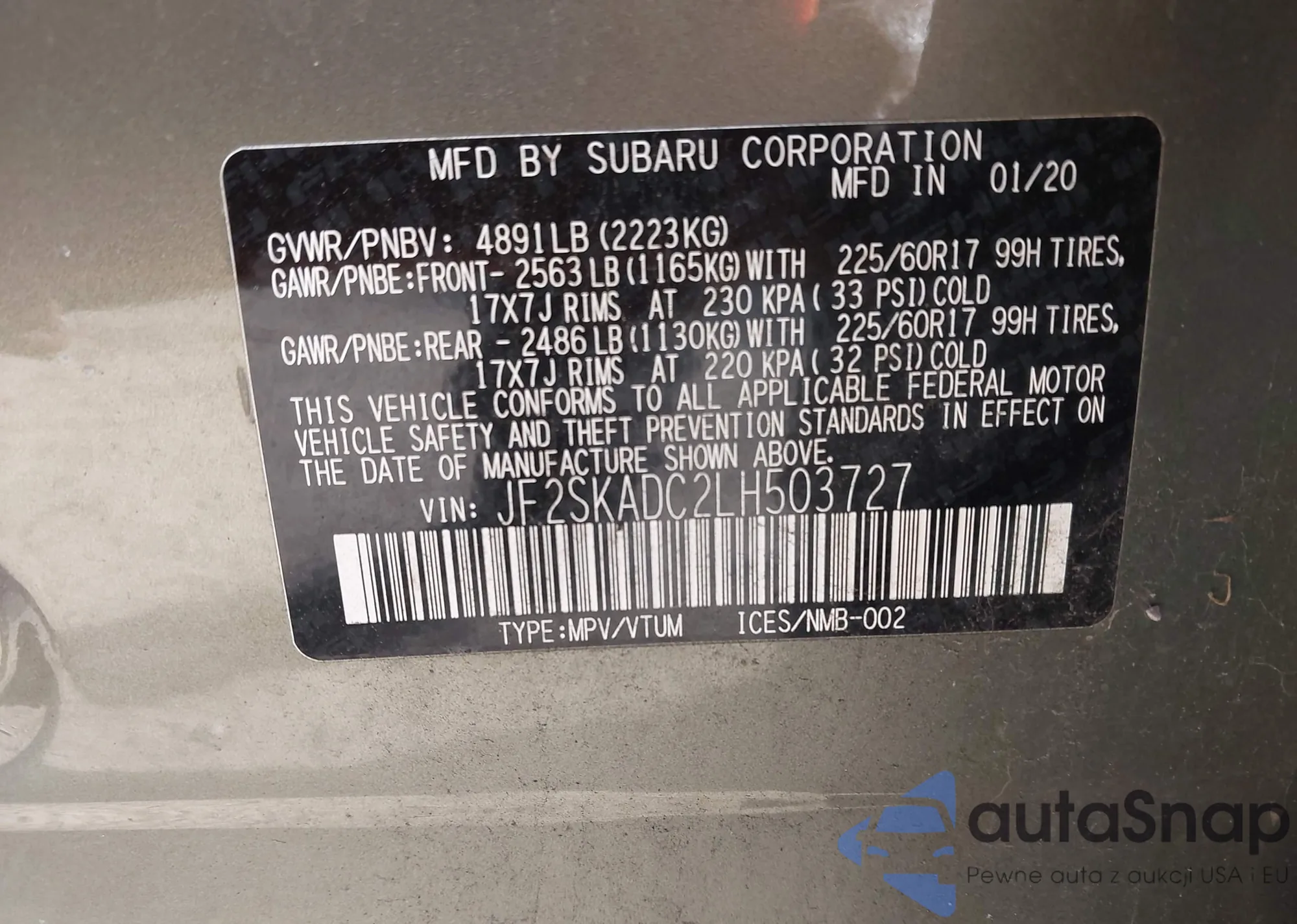 • VIN: JF2SKADC2LH503727