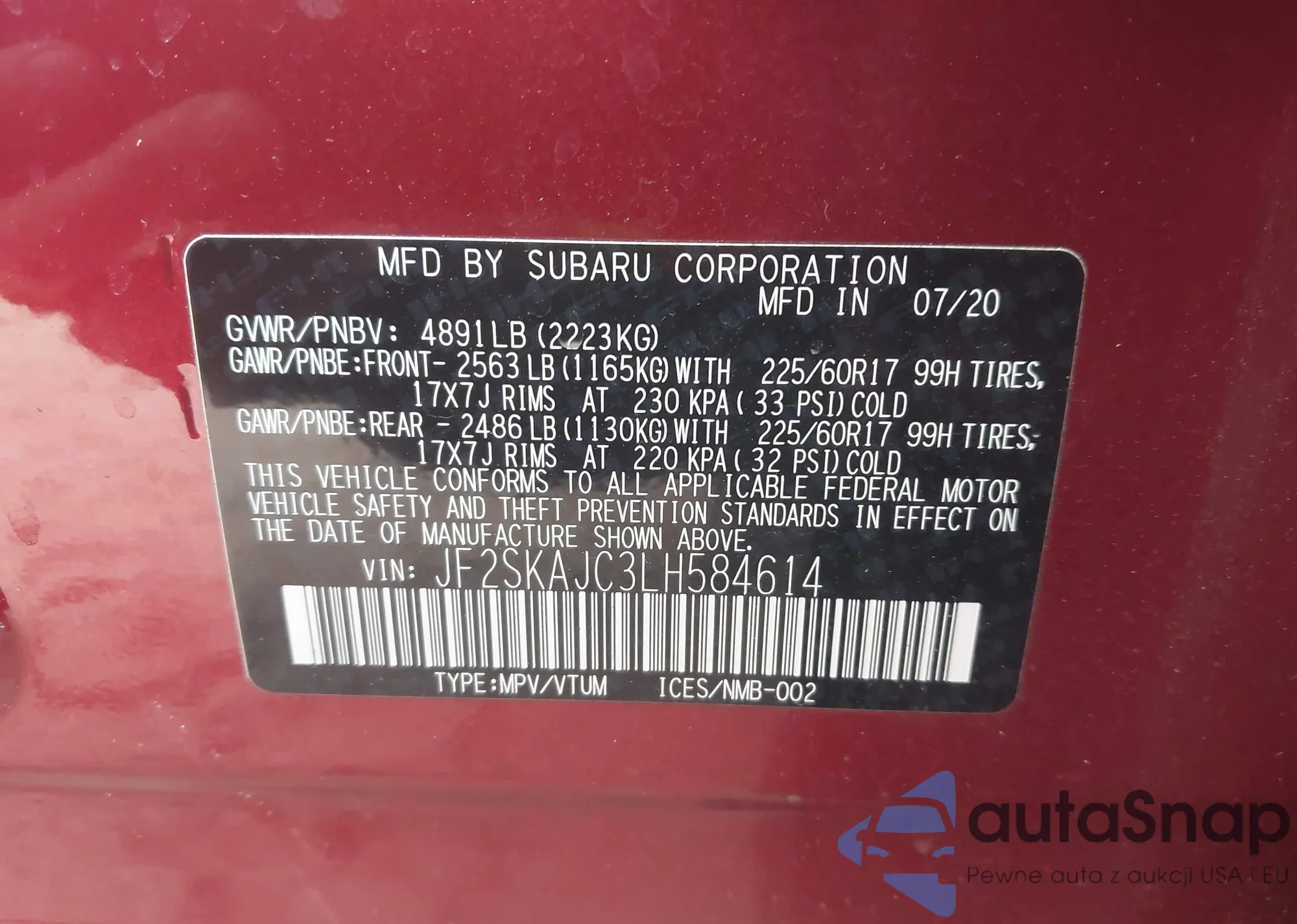 VIN: JF2SKAJC3LH584614