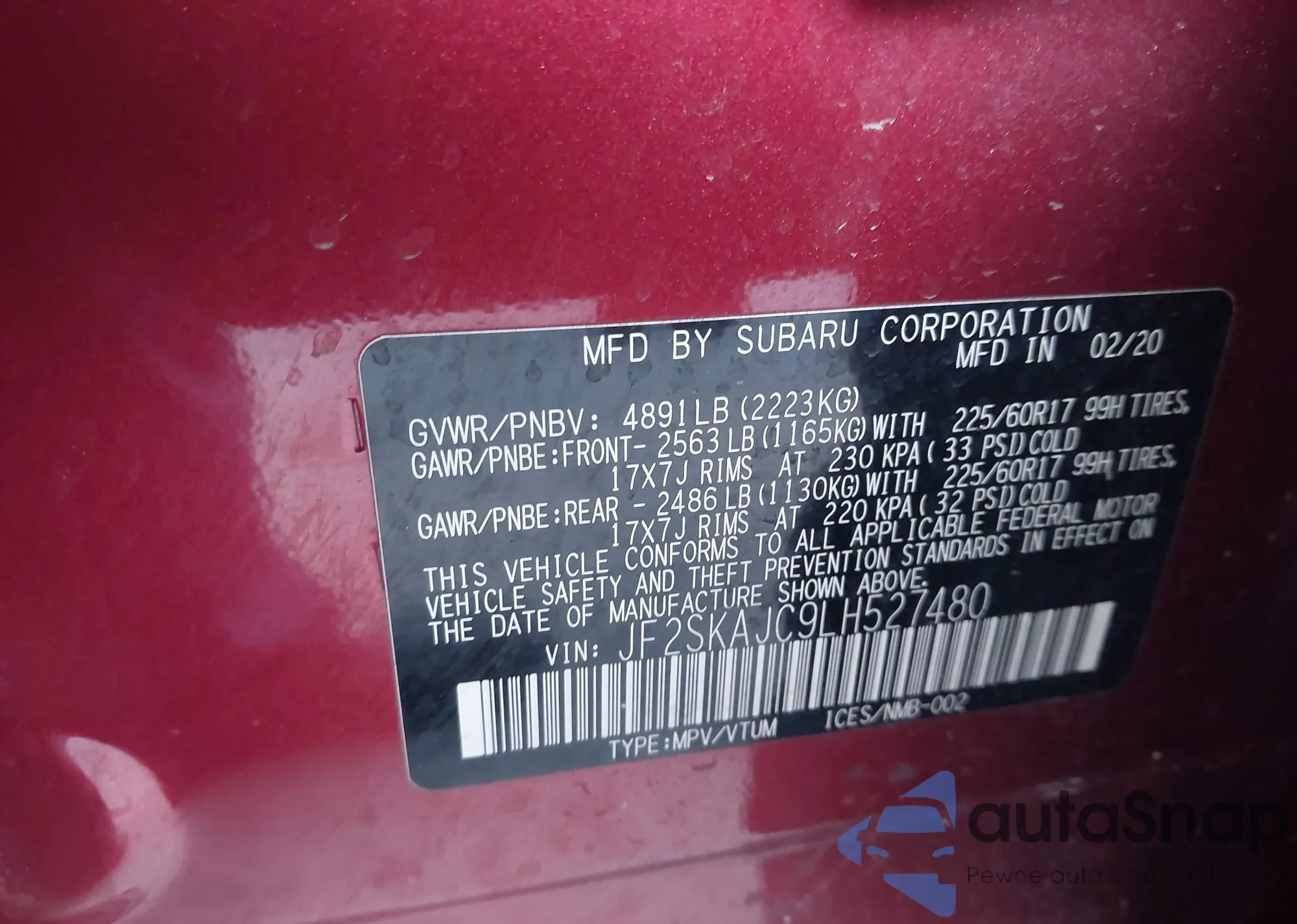 JF2SKAJC9LH527480 IAAI
