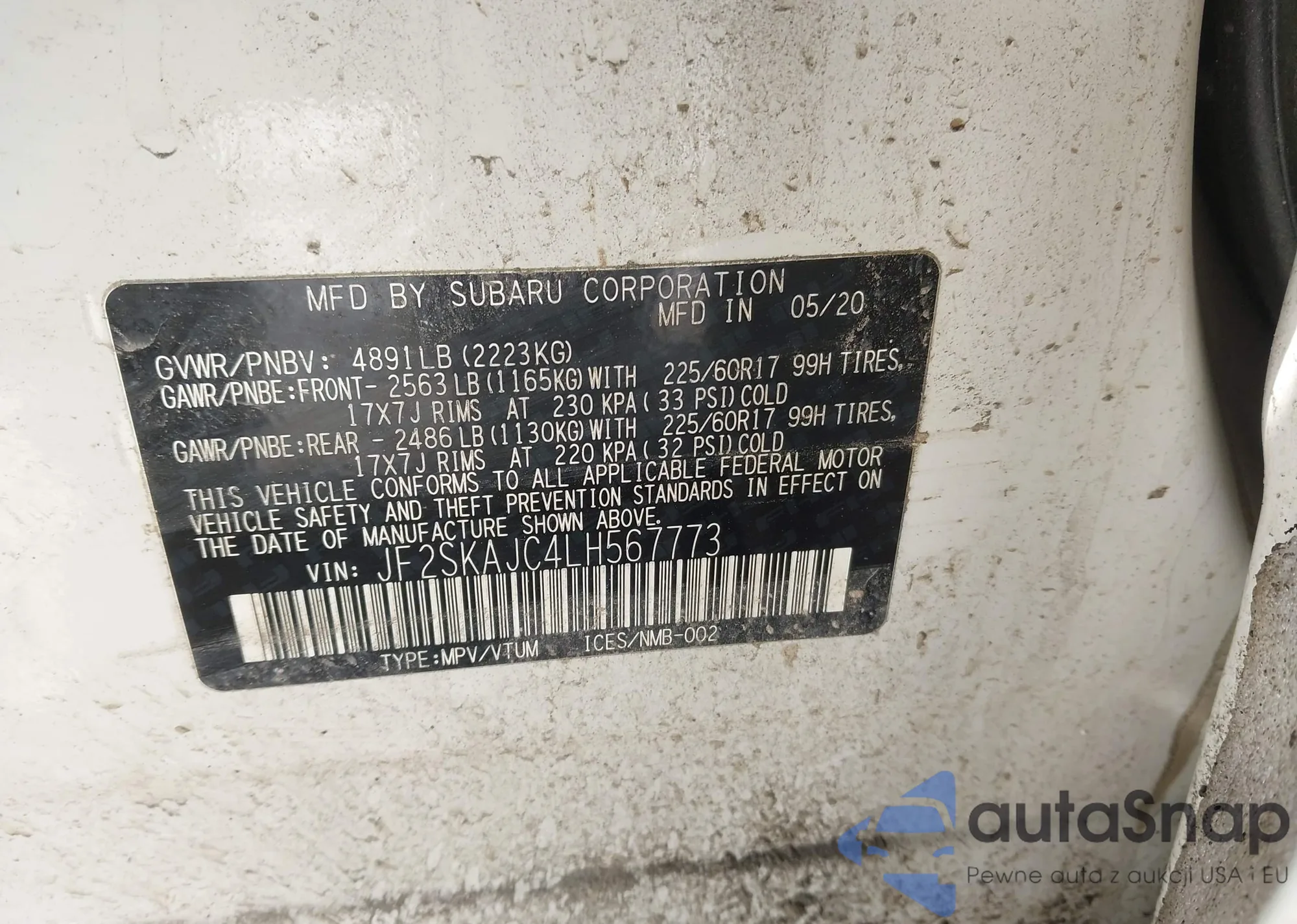 • VIN: JF2SKAJC4LH567773