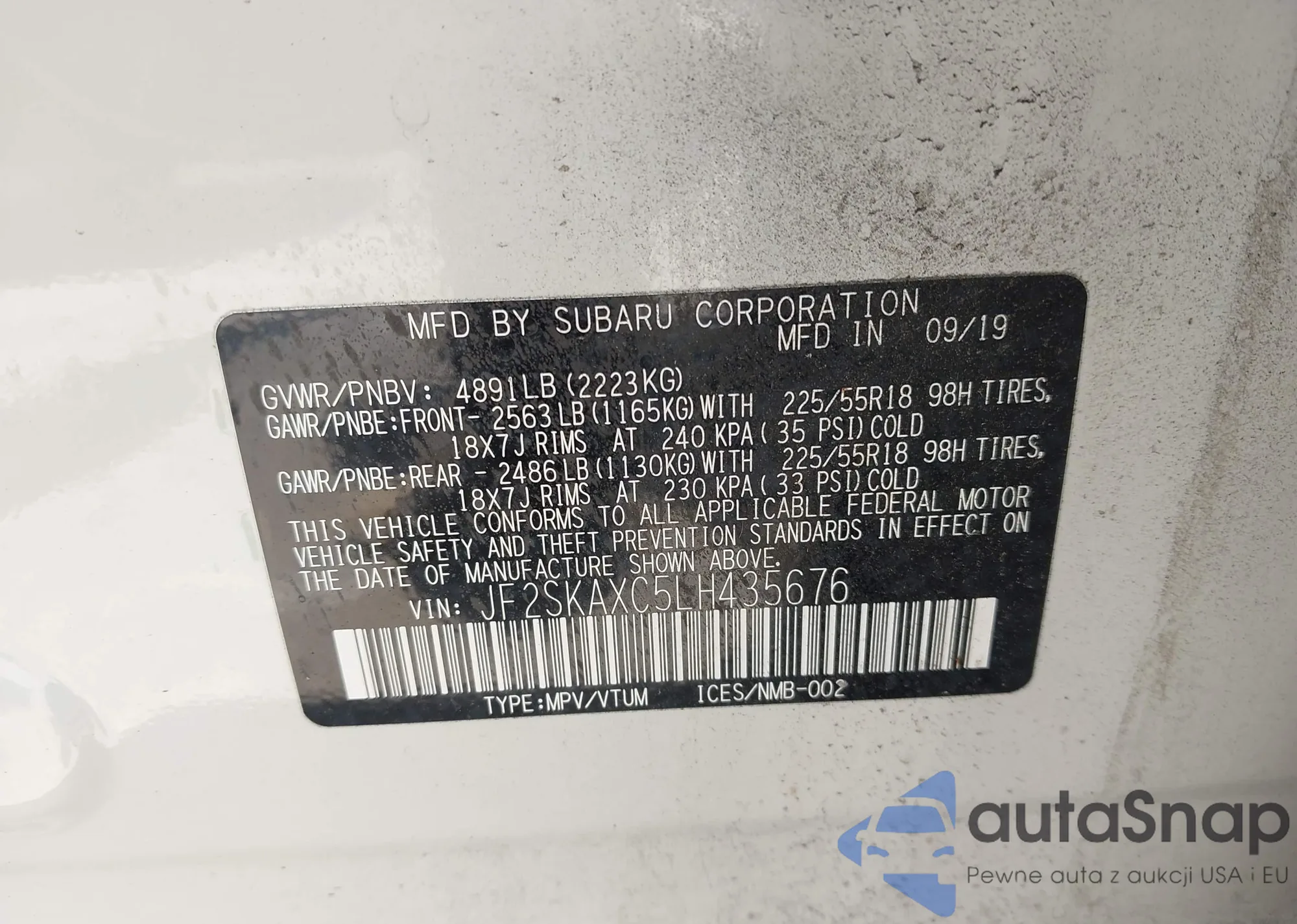 VIN: JF2SKAXC5LH435676