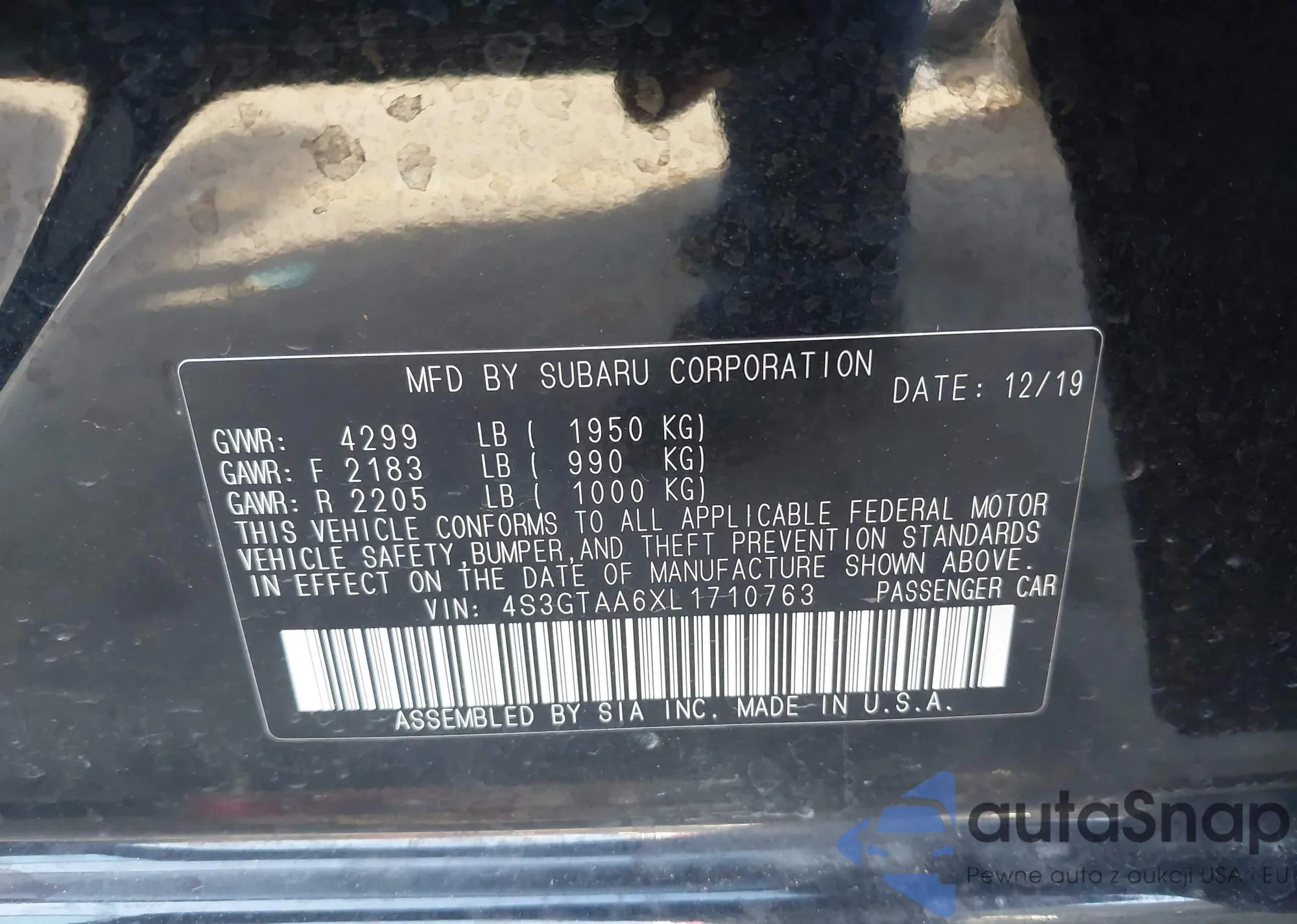 • VIN: 4S3GTAA6XL1710763