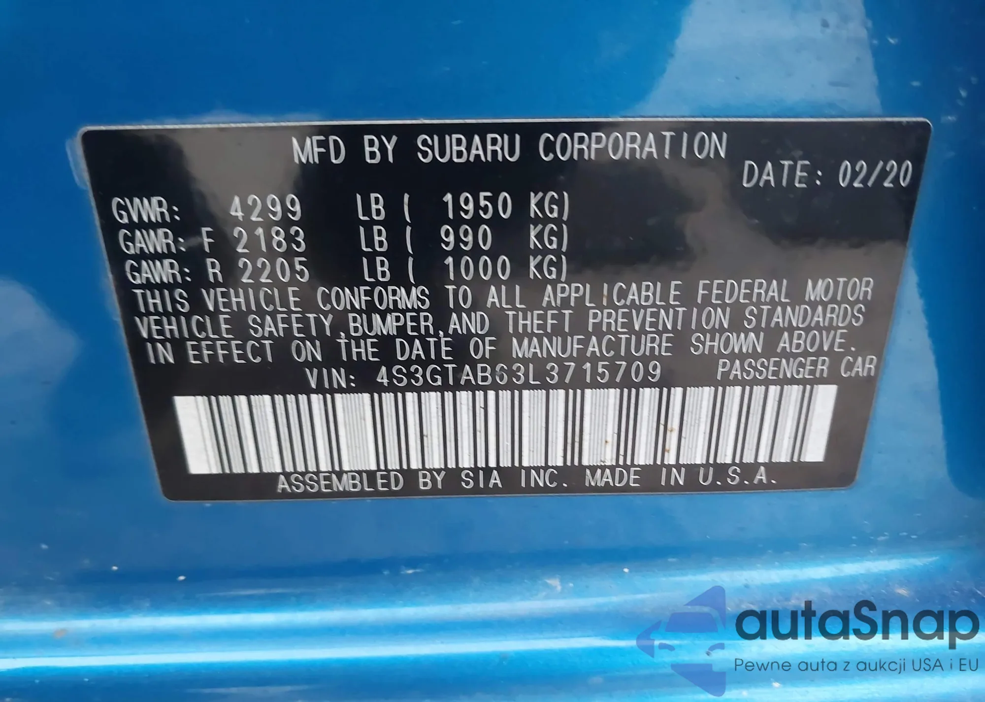 VIN: 4S3GTAB63L3715709