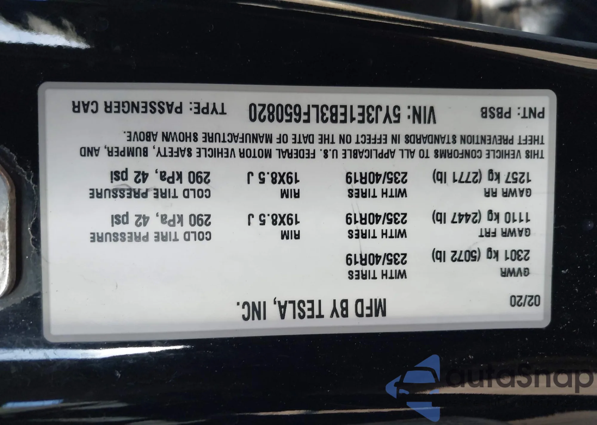 The car Tesla Model 3 2020 (VIN 5YJ3E1EB3LF650820) has not been auctioned before. The documents are clean, and the mileage matches or is below the market average. Sold by an insurance company – we recommend purchase. Delivery to the port will take approx. 6–8 weeks.