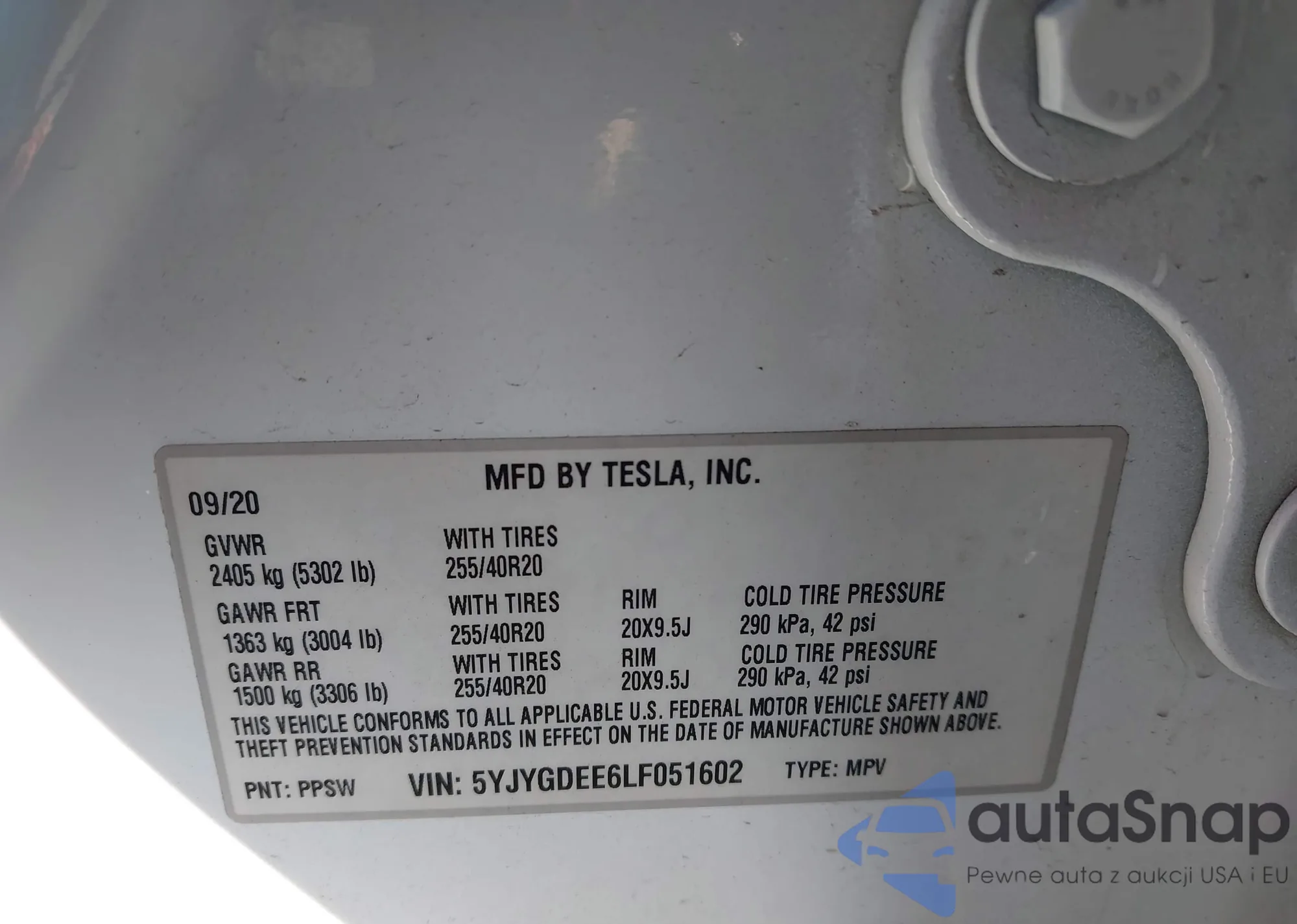 • VIN: 5YJYGDEE6LF051602