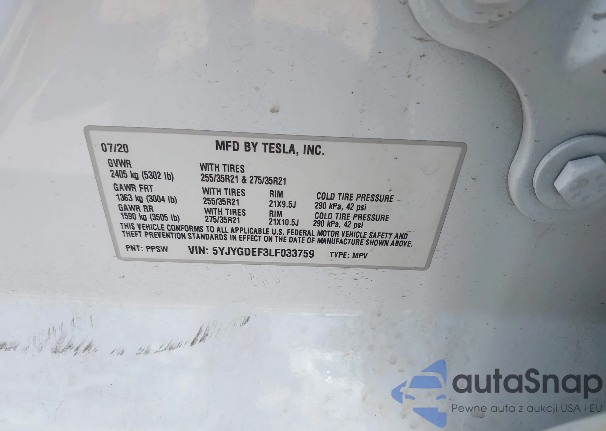 VIN: 5YJYGDEF3LF033759