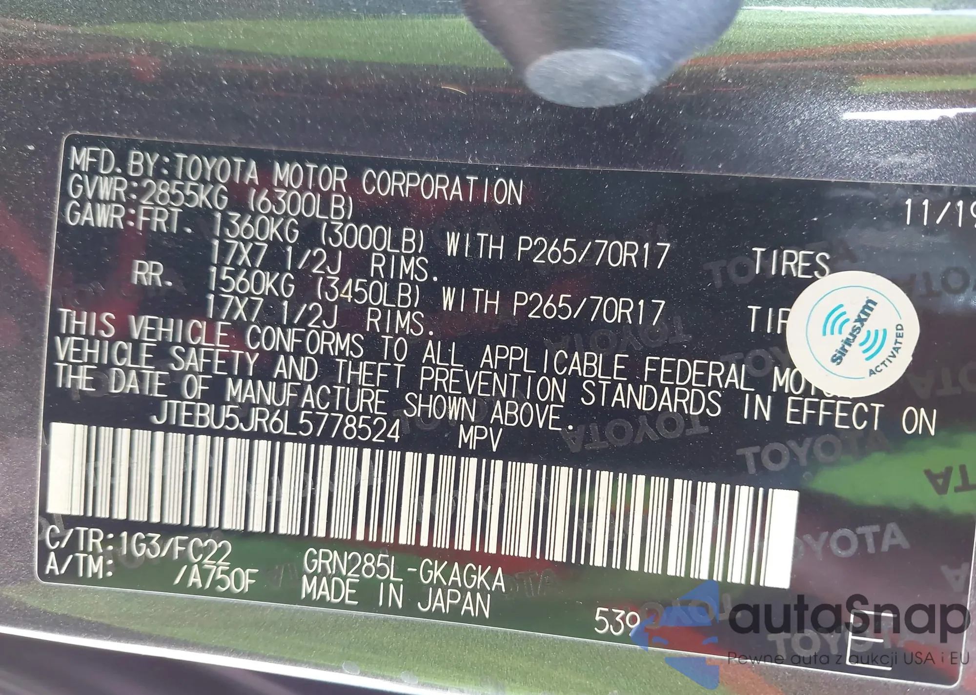 VIN: JTEBU5JR6L5778524