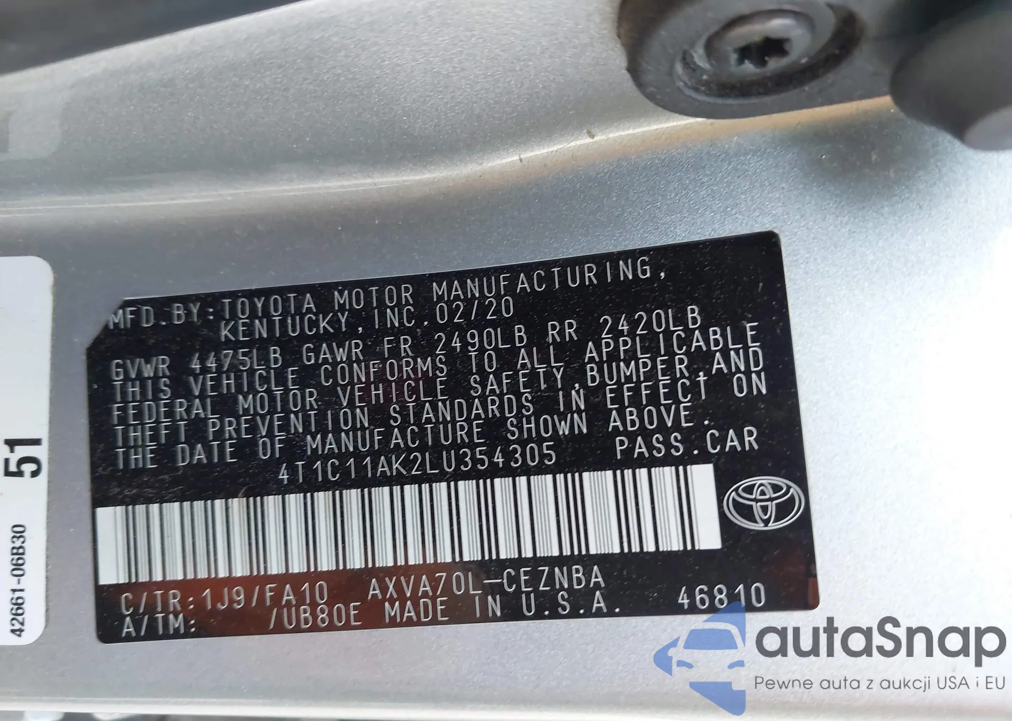 VIN: 4T1C11AK2LU354305