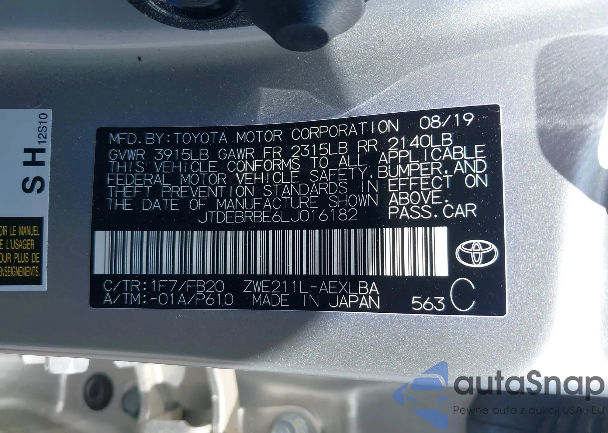 VIN: JTDEBRBE6LJ016182