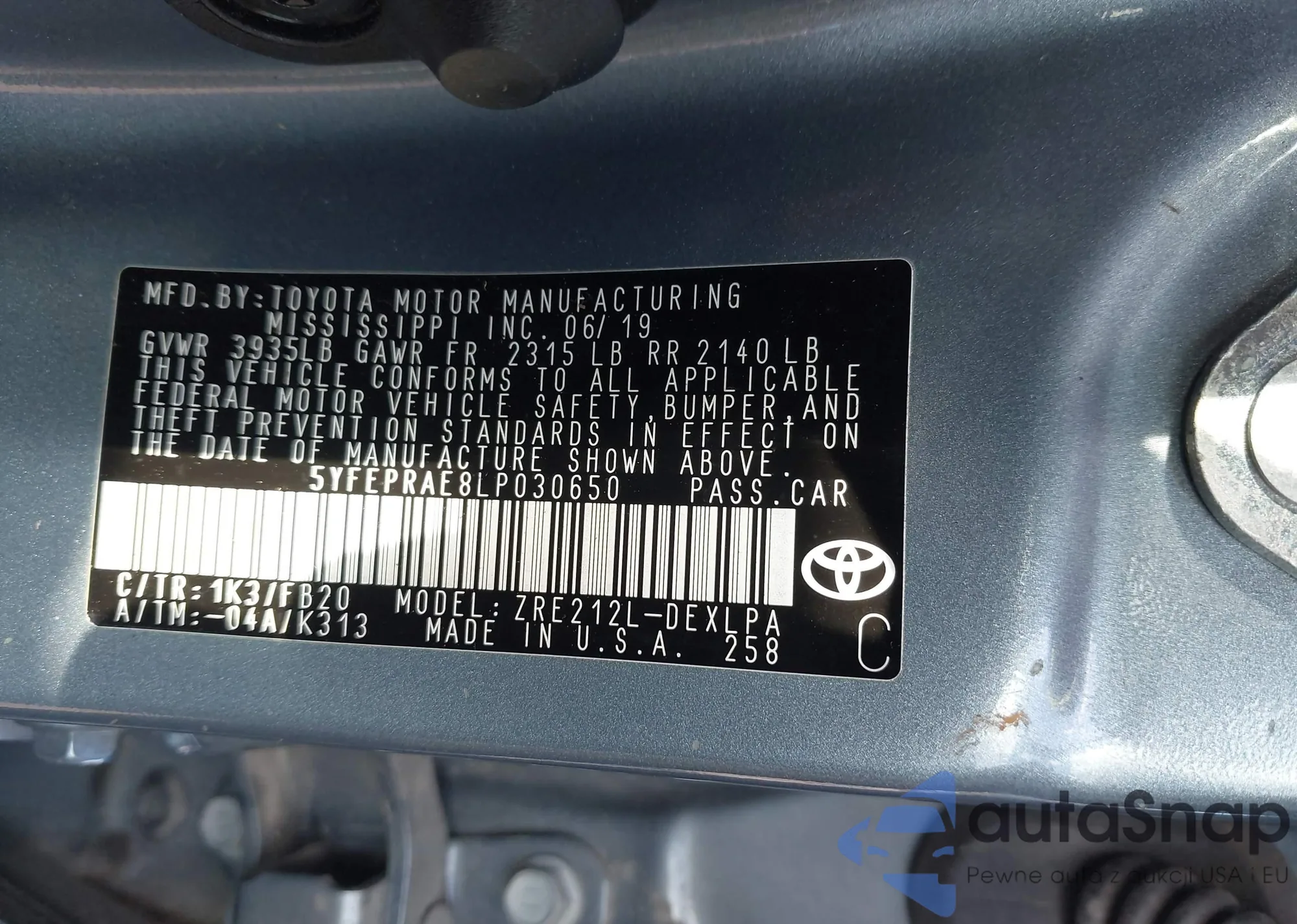 VIN: 5YFEPRAE8LP030650