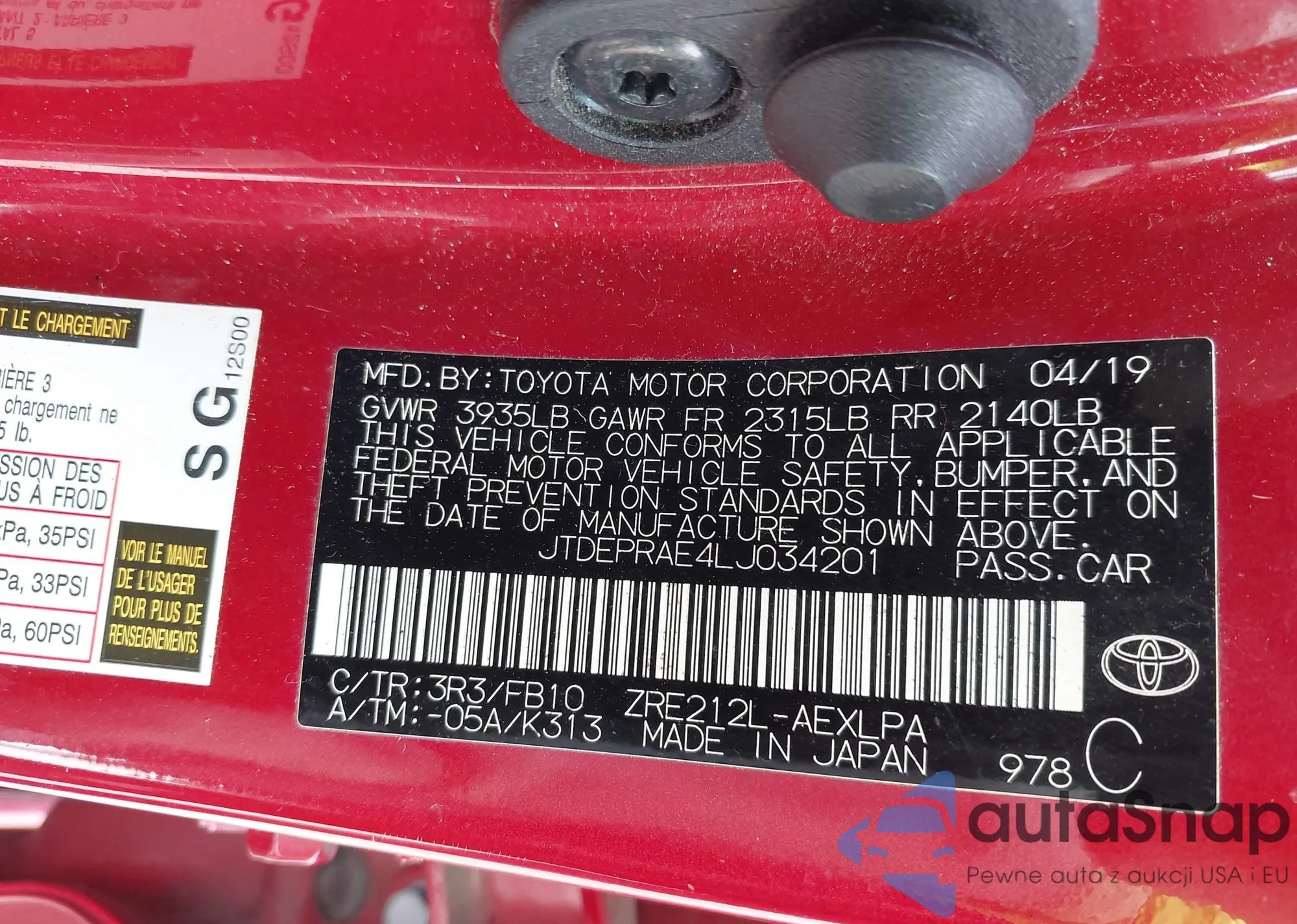 VIN: JTDEPRAE4LJ034201