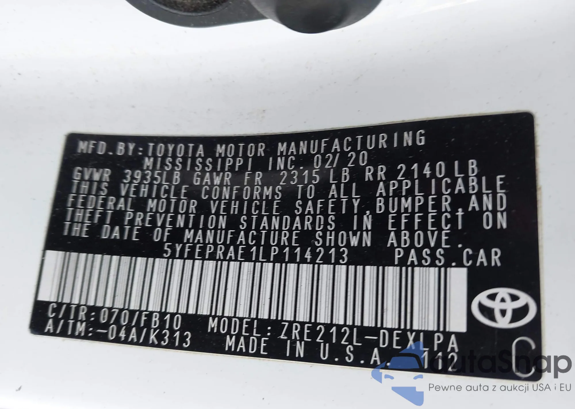 VIN: 5YFEPRAE1LP114213