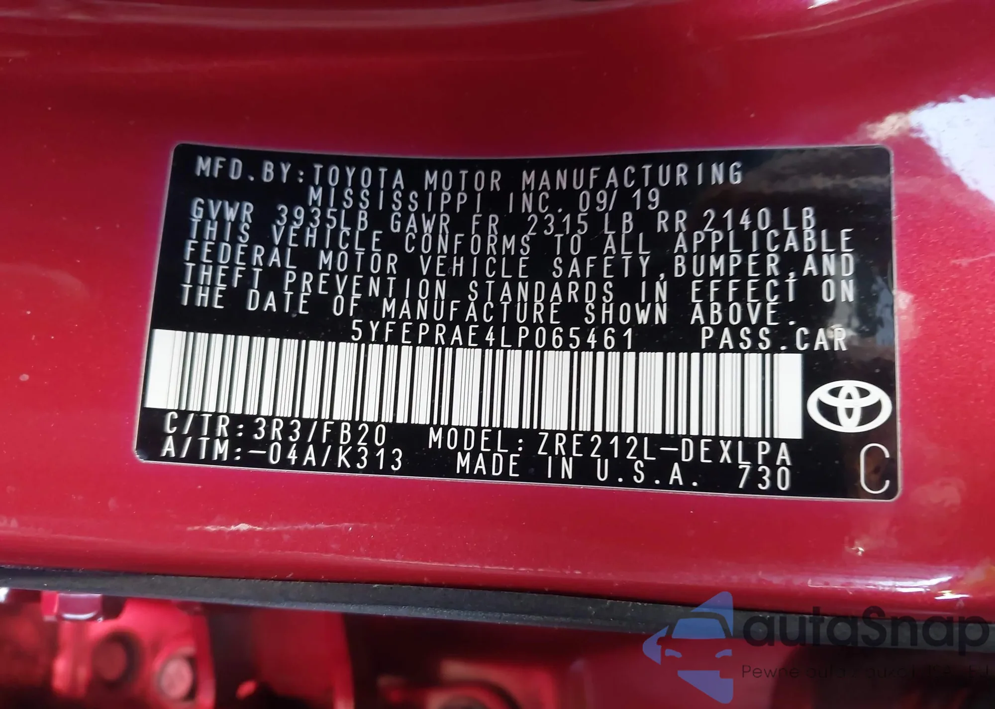The car Toyota Corolla 2020 (VIN 5YFEPRAE4LP065461) has not been auctioned before. The documents are clean, and the mileage matches or is below the market average. Sold by an insurance company – we recommend purchase. Delivery to the port will take approx. 6–8 weeks.