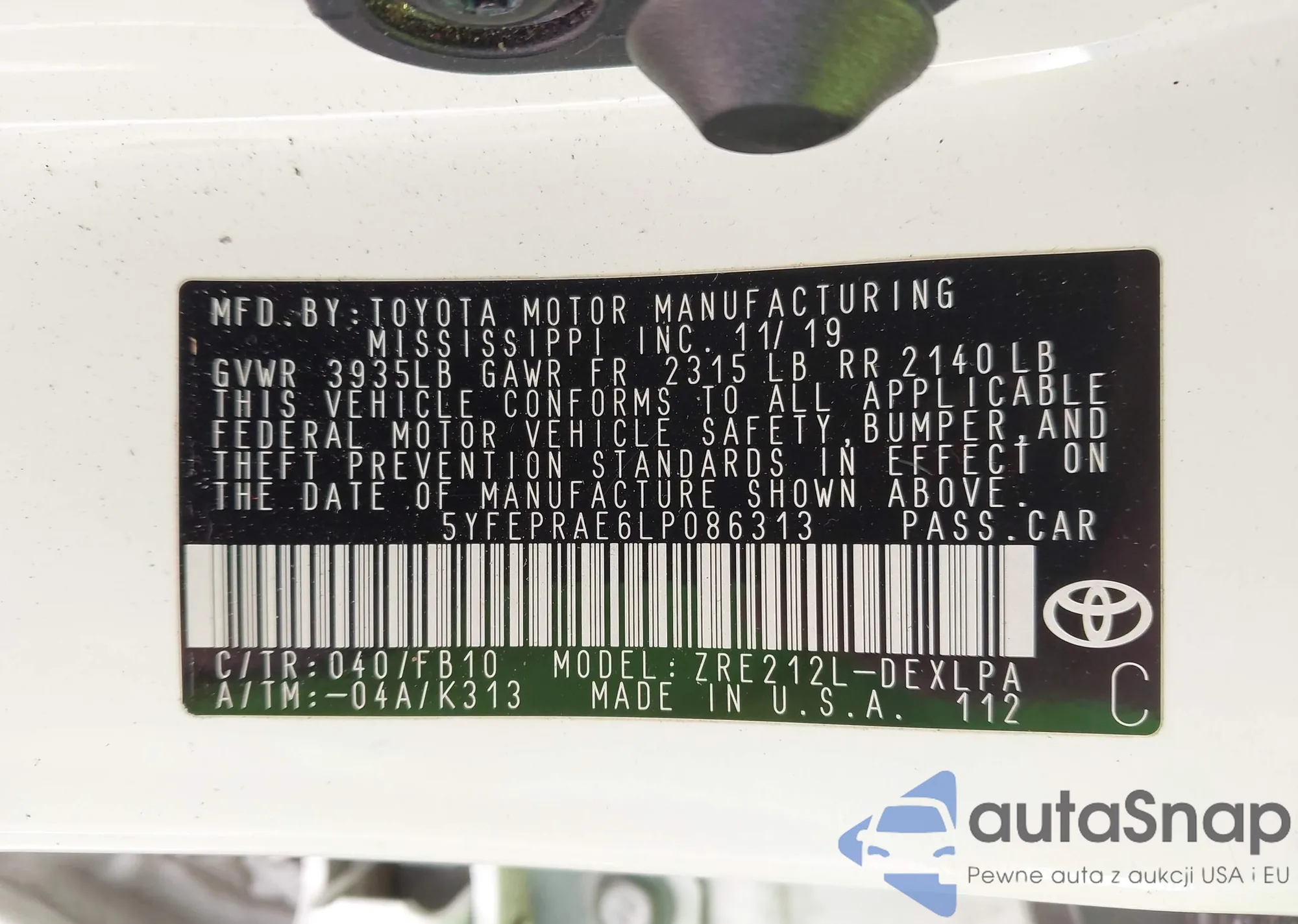 VIN: 5YFEPRAE6LP086313