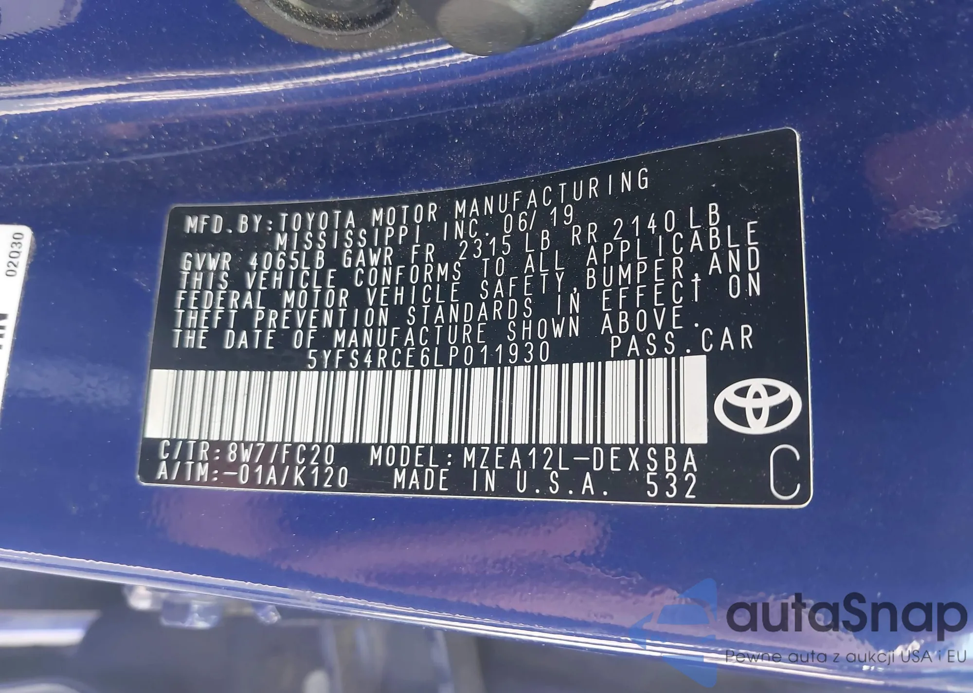 VIN: 5YFS4RCE6LP011930