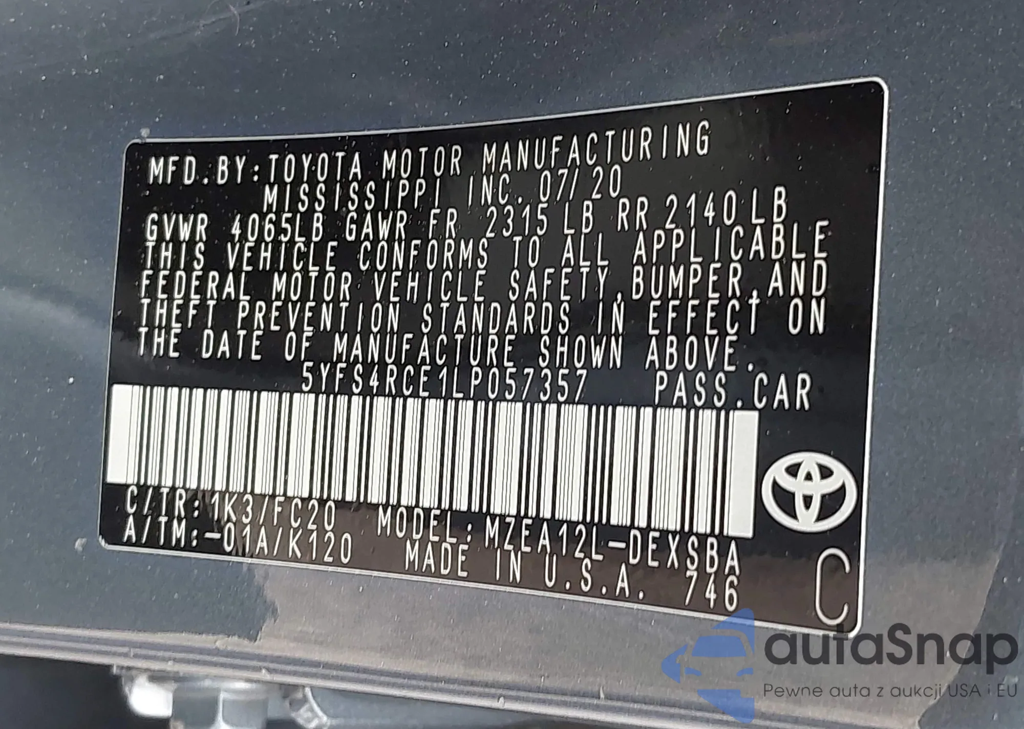VIN: 5YFS4RCE1LP057357
