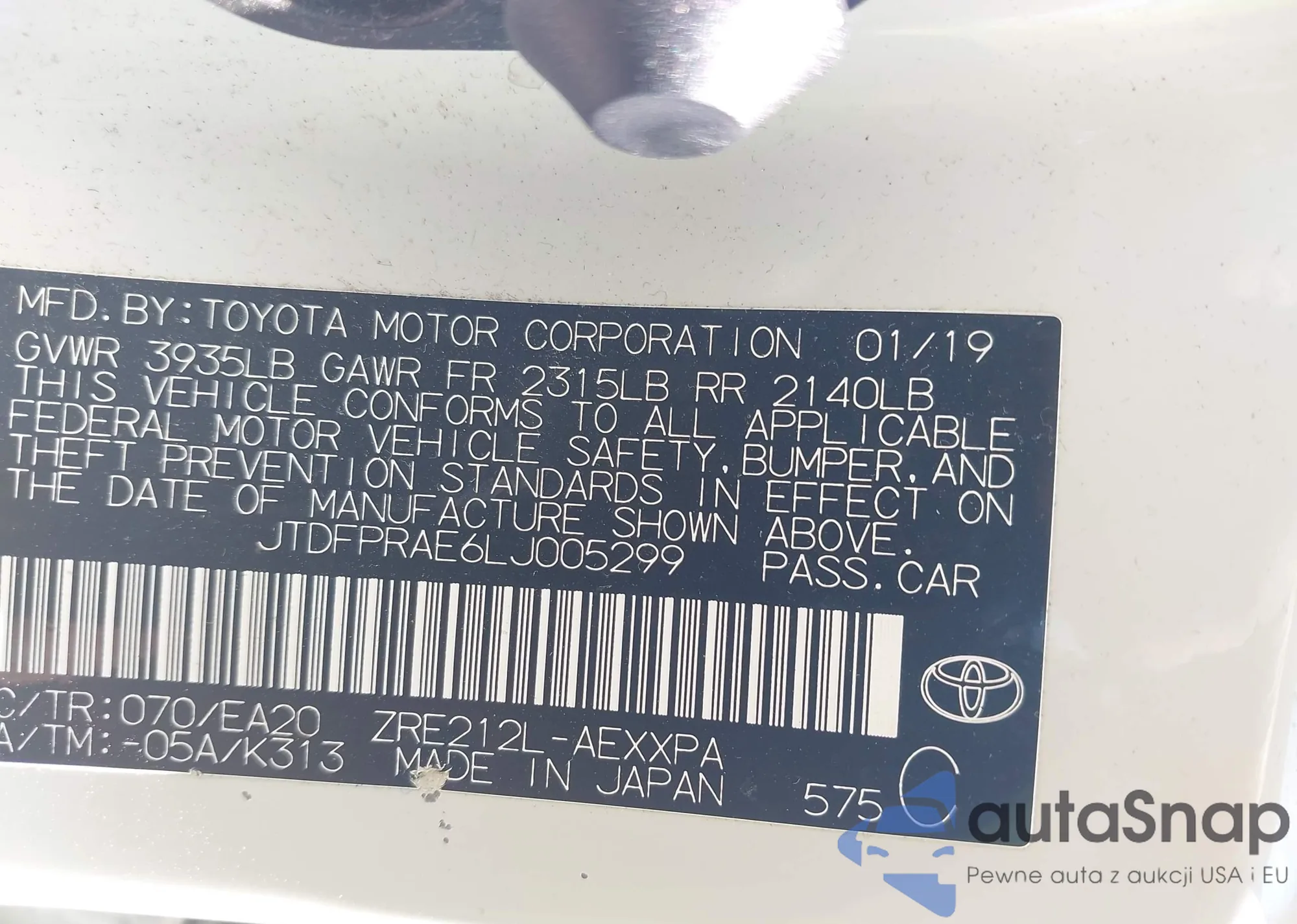 VIN: JTDFPRAE6LJ005299