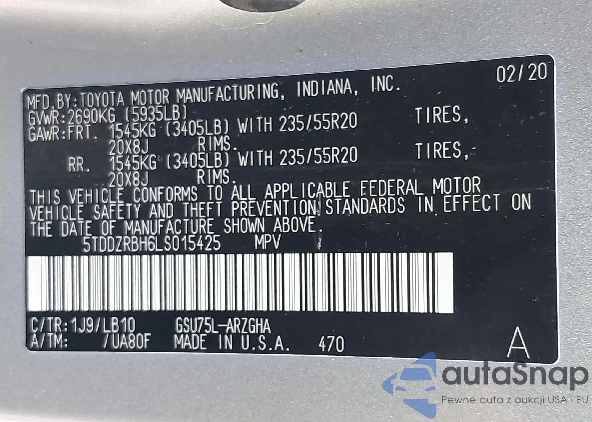 VIN: 5TDDZRBH6LS015425