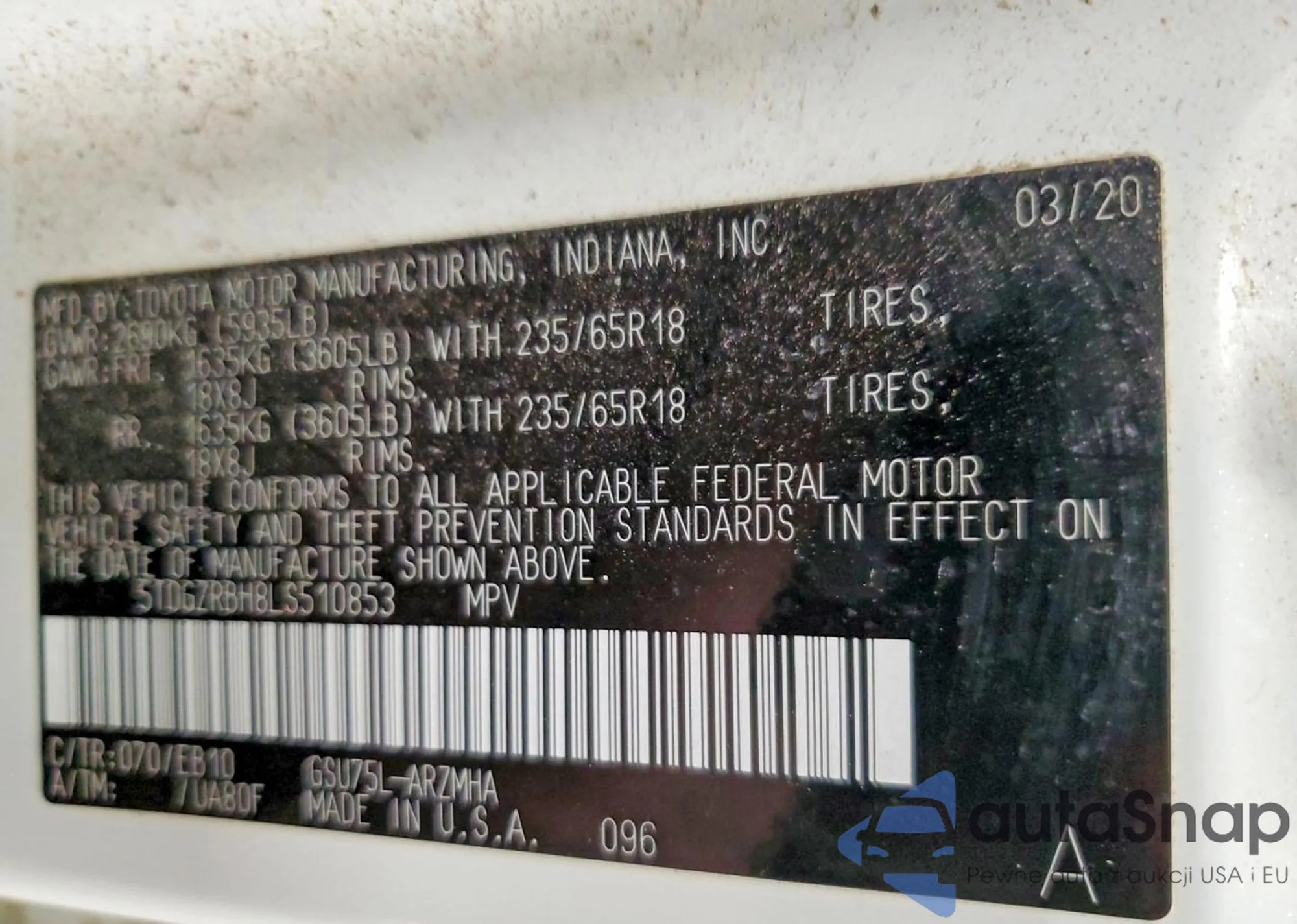 VIN: 5TDGZRBH8LS510853