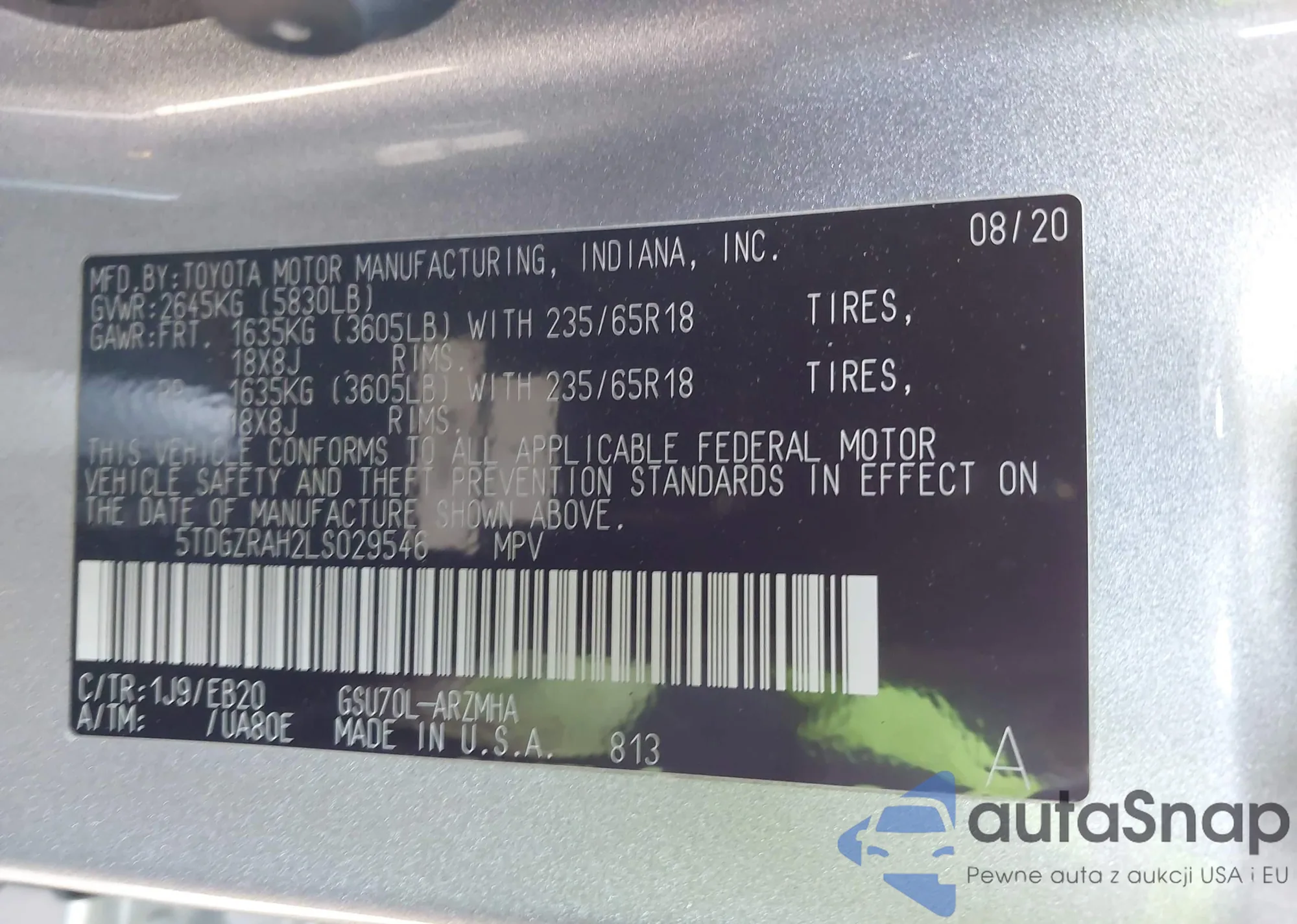 VIN: 5TDGZRAH2LS029546