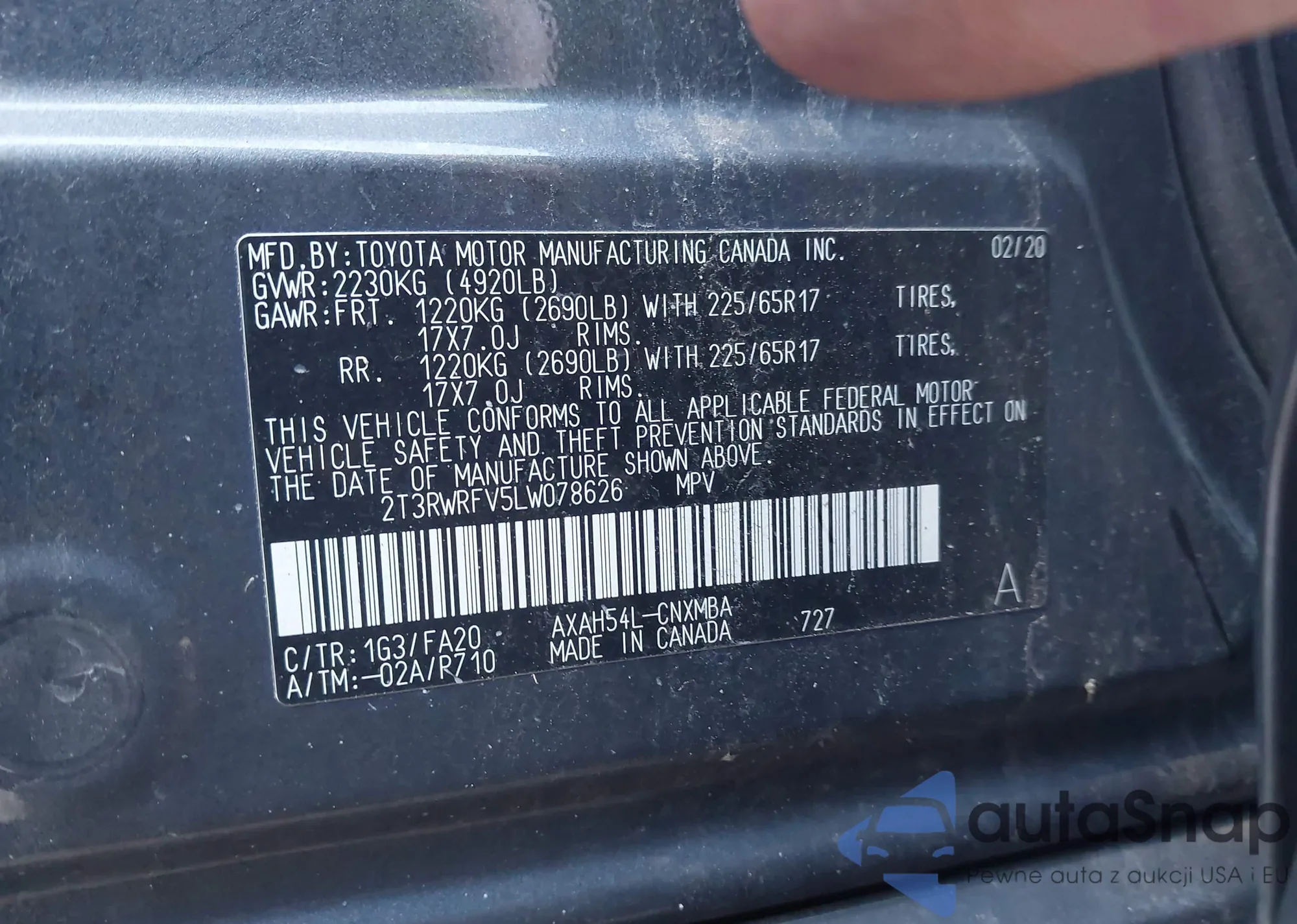 VIN: 2T3RWRFV5LW078626