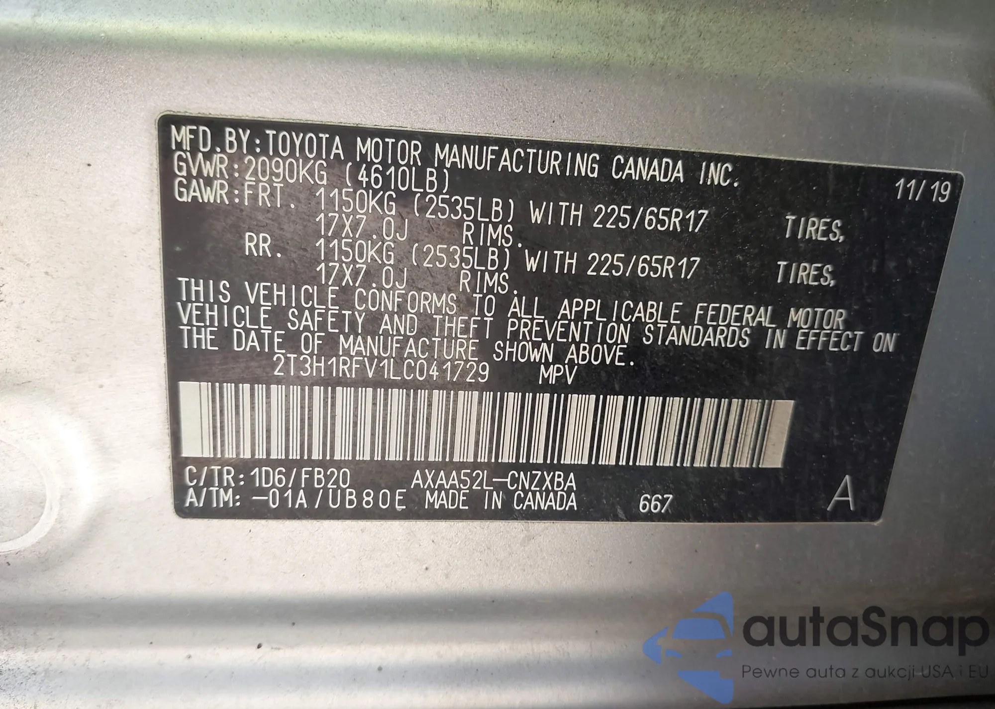 VIN: 2T3H1RFV1LC041729