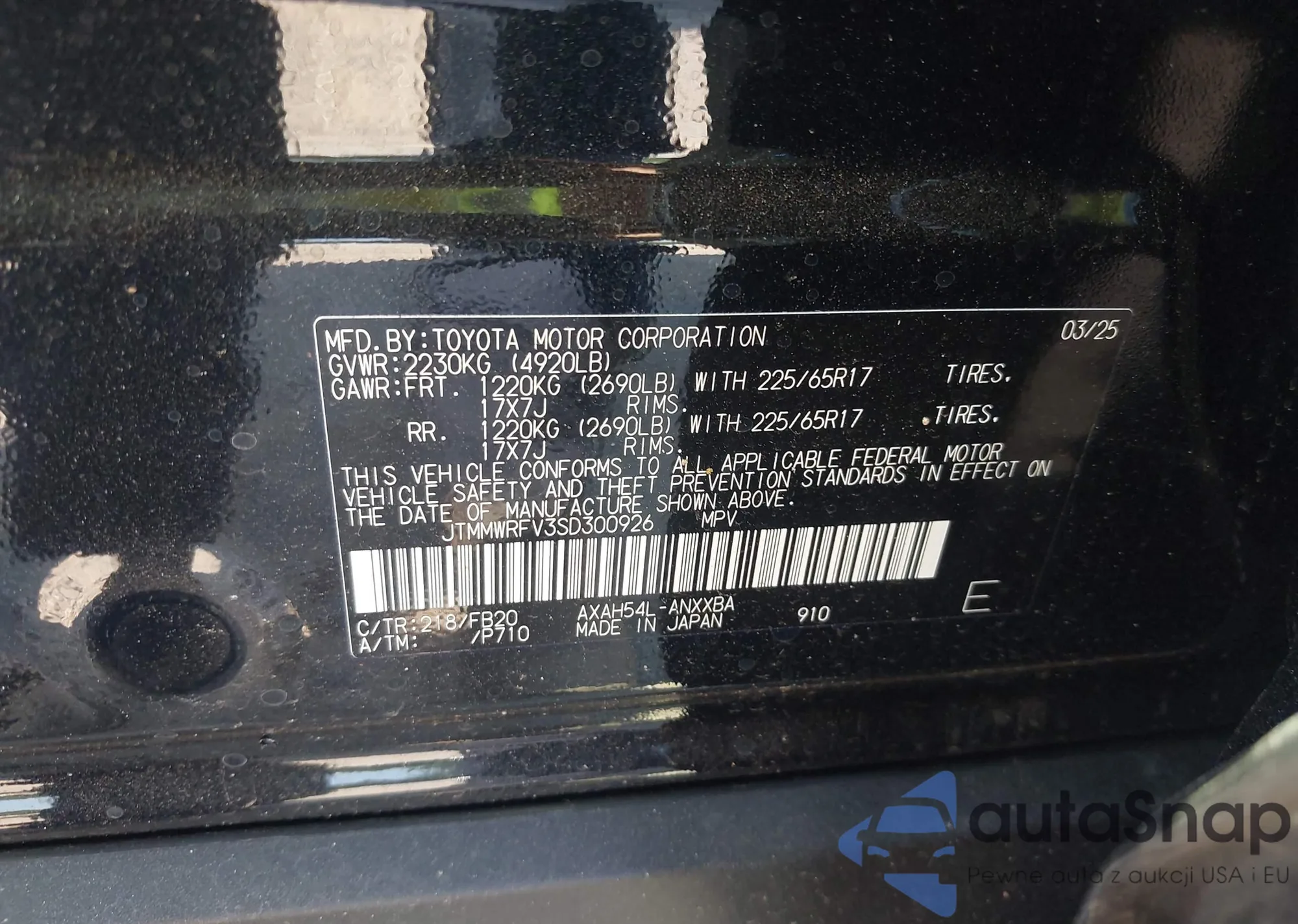 • VIN: 2T3LWRFV3LW075715