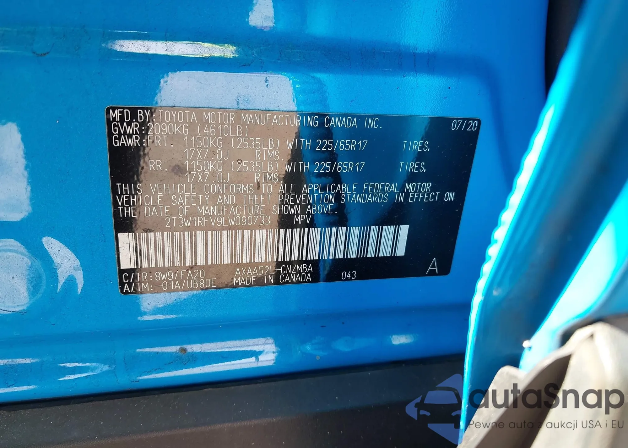The car Toyota RAV 4 2020 (VIN 2T3W1RFV9LW090733) has not been auctioned before. The documents are clean, and the mileage matches or is below the market average. Sold by an insurance company – we recommend purchase. Delivery to the port will take approx. 6–8 weeks.