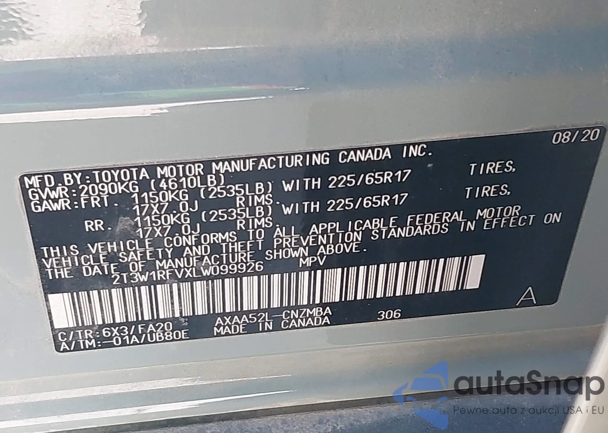 VIN: 2T3W1RFVXLW099926
