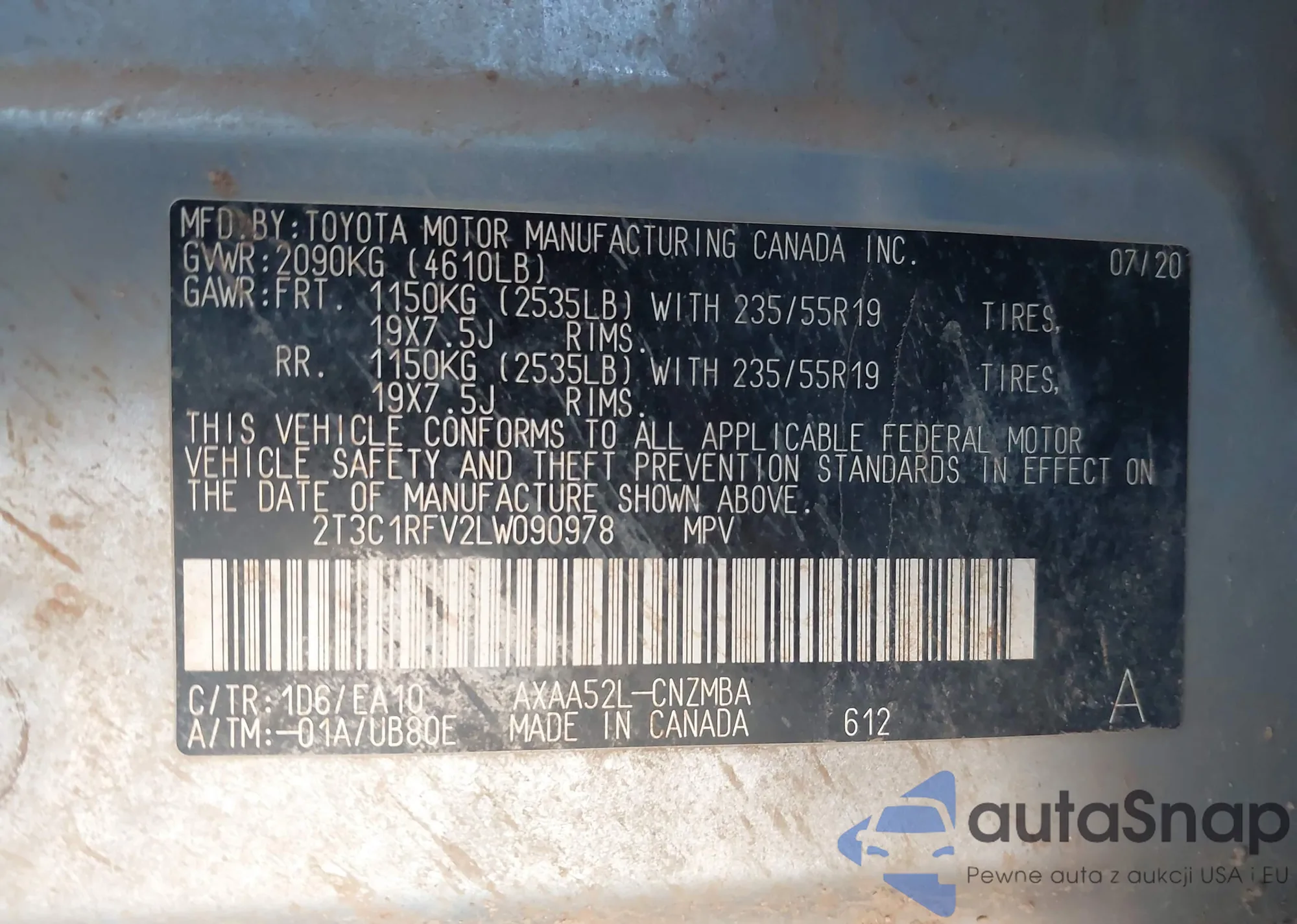 The car Toyota RAV 4 2020 (VIN 2T3C1RFV2LW090978) has not been auctioned before. The documents are clean, and the mileage matches or is below the market average. Sold by an insurance company – we recommend purchase. Delivery to the port will take approx. 6–8 weeks.