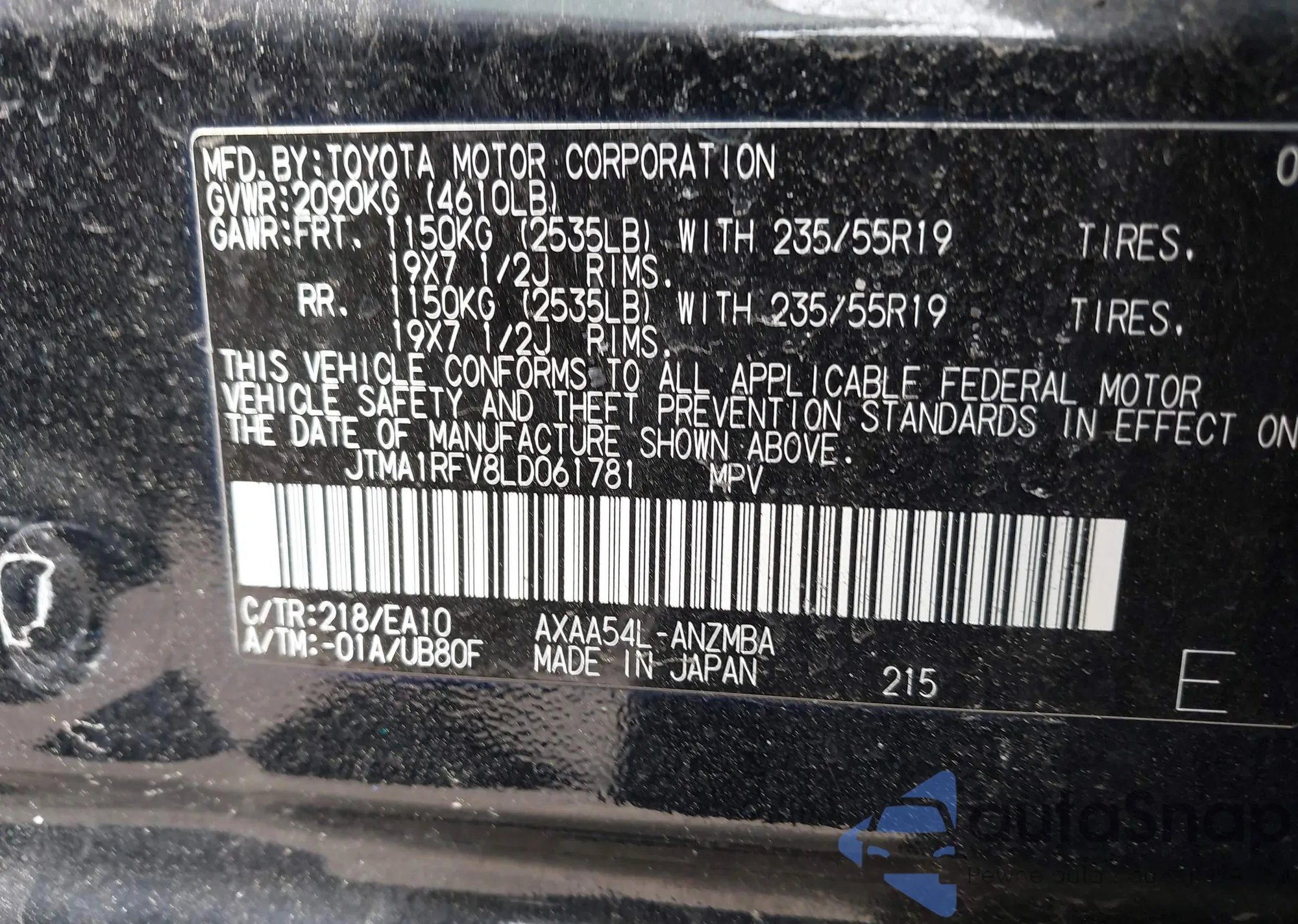 VIN: JTMA1RFV8LD061781