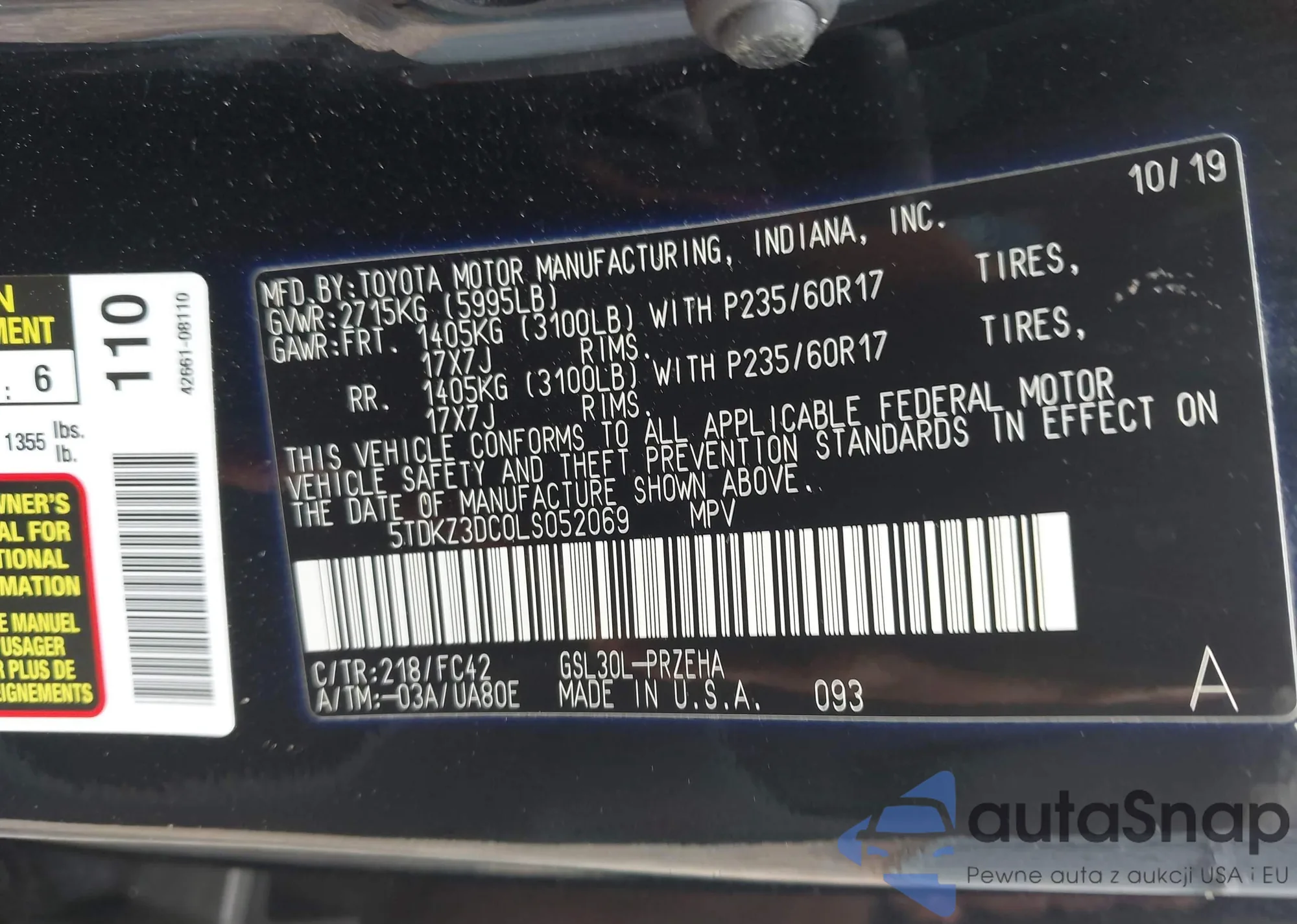 VIN: 5TDKZ3DC0LS052069