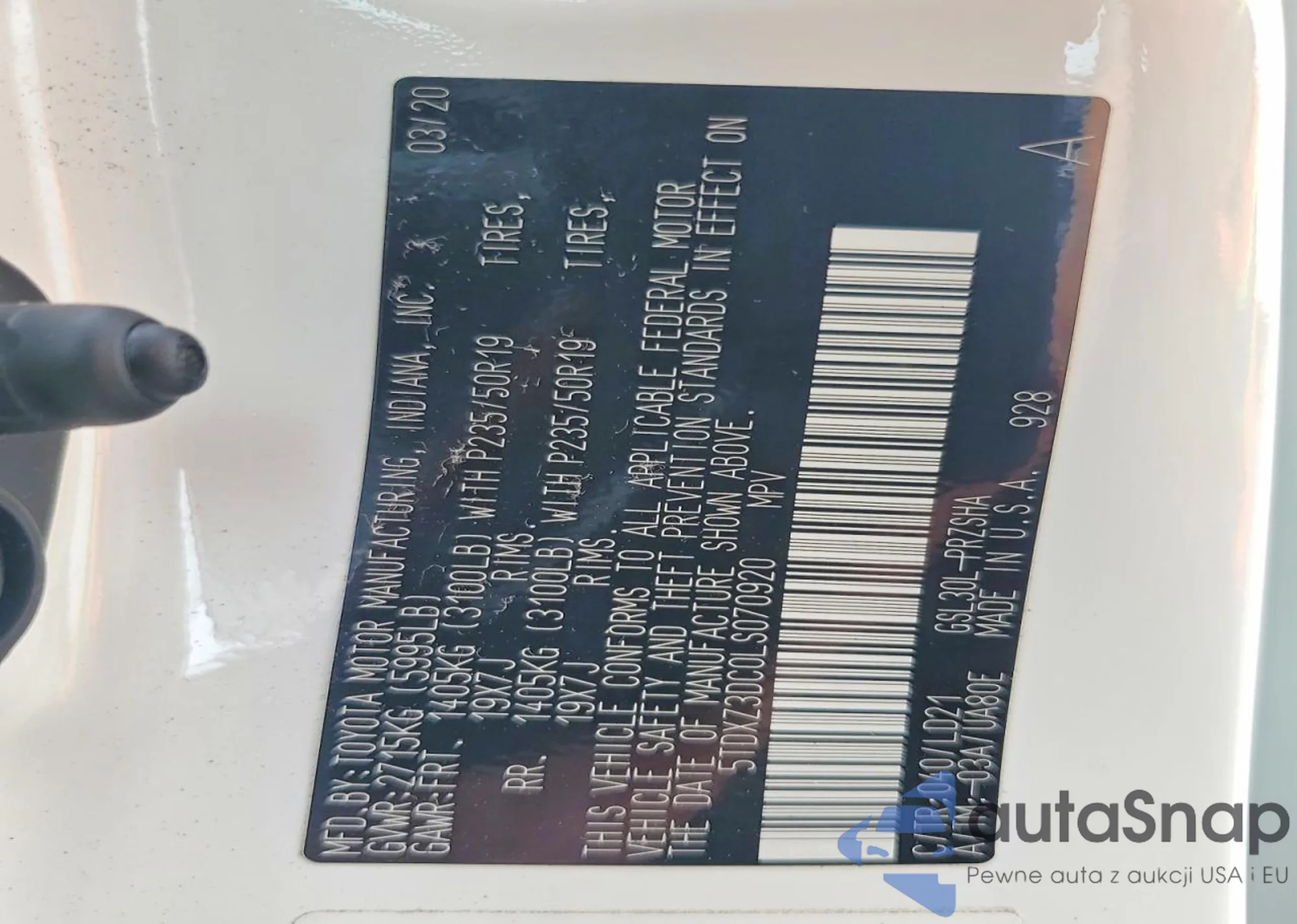 The car Toyota Sienna 2020 (VIN 5TDXZ3DC0LS070920) is sold by an unverified seller. We recommend checking the Carfax report and confirming registration possibilities before purchase.