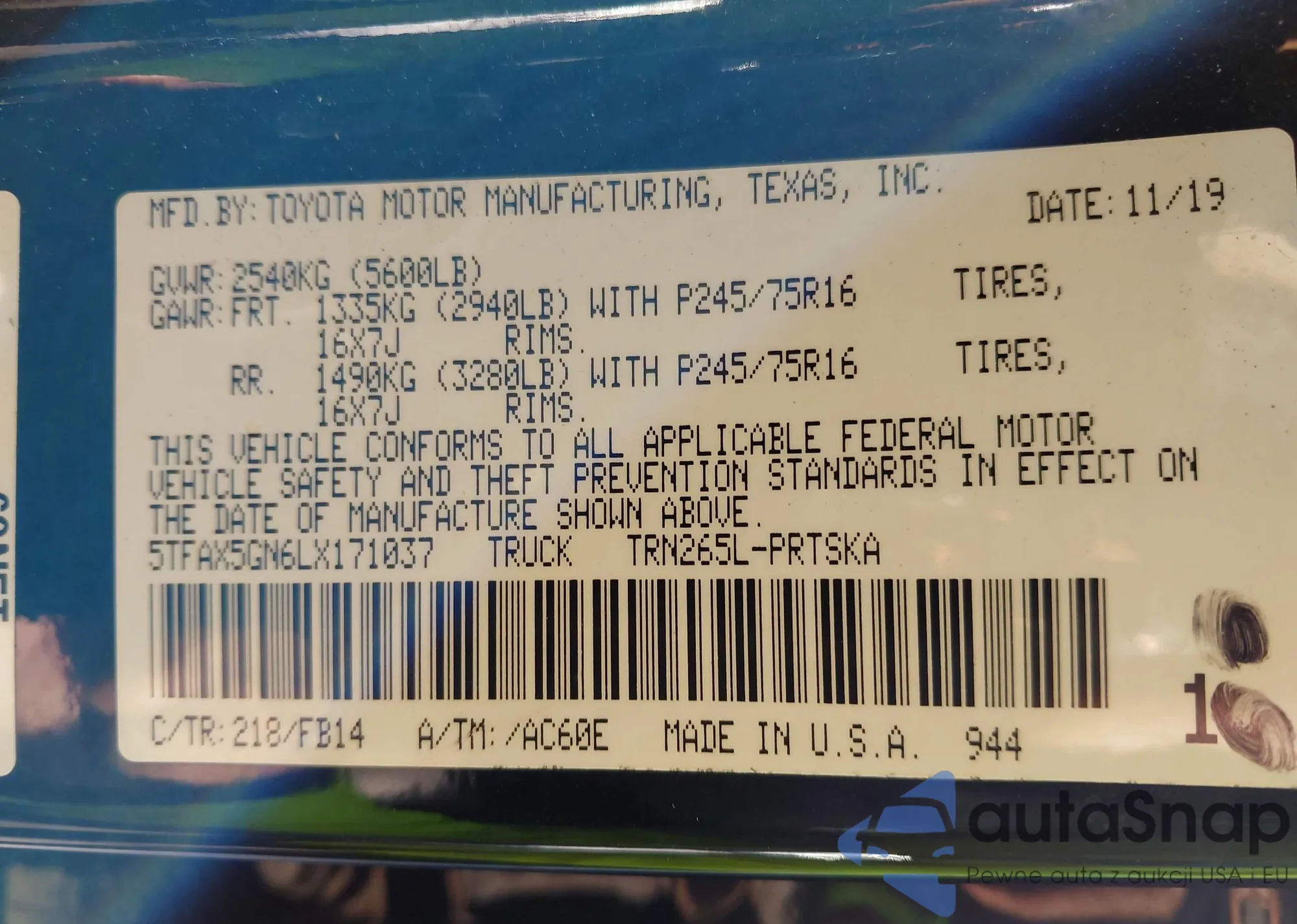VIN: 5TFAX5GN6LX171037