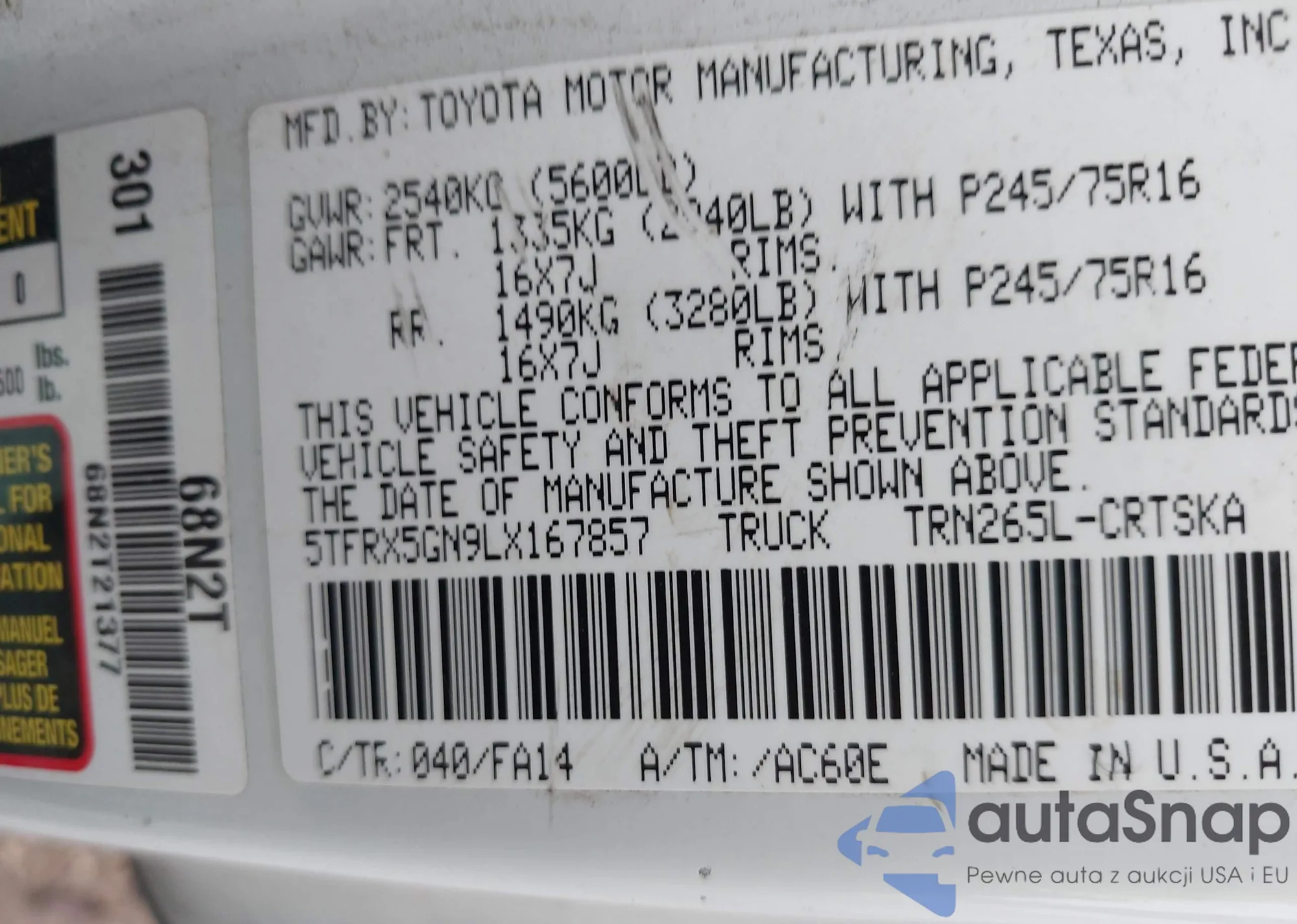 The car Toyota Tacoma 2020 (VIN 5TFRX5GN9LX167857) is sold by an unverified seller. We recommend checking the Carfax report and confirming registration possibilities before purchase.