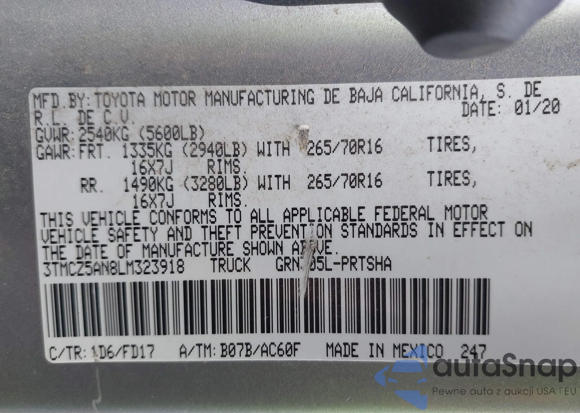 VIN: 3TMCZ5AN8LM323918