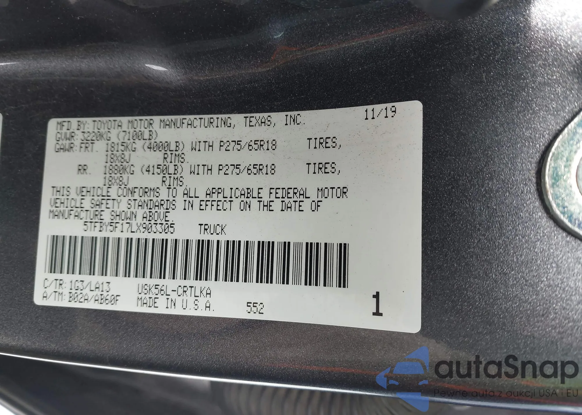 VIN: 5TFBY5F17LX903305