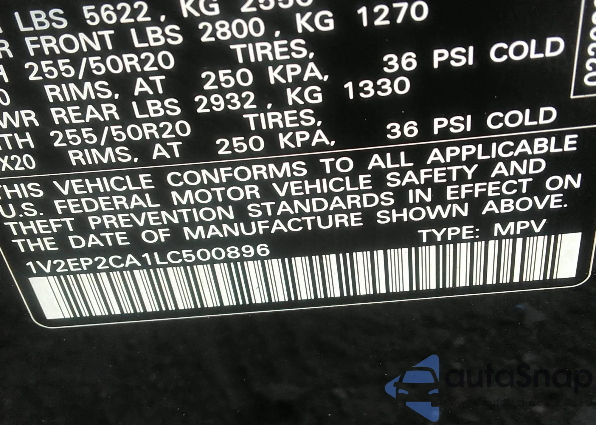 VIN: 1V2EP2CA1LC500896