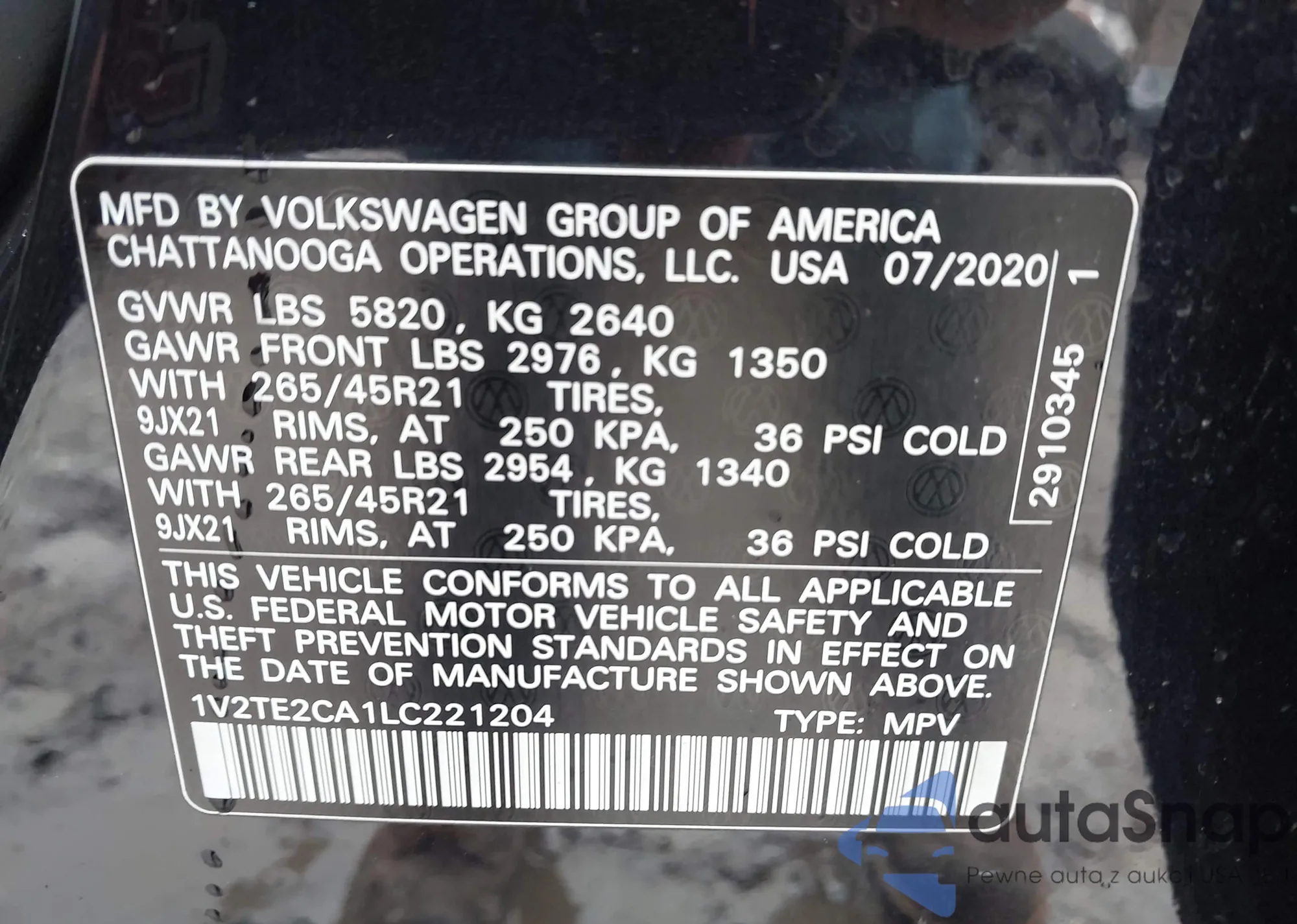 • VIN: 1V2TE2CA1LC221204