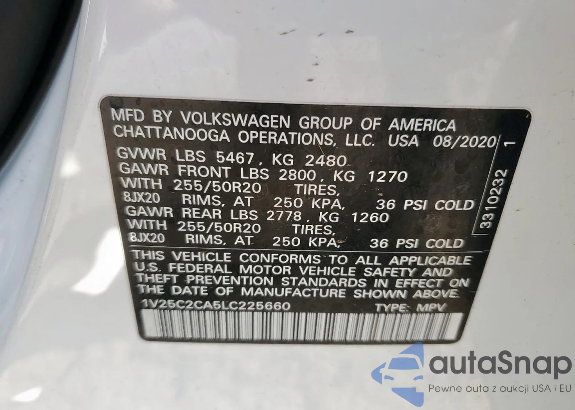 The car Volkswagen Atlas Cross Sport 2020 (VIN 1V25C2CA5LC225660) has already been auctioned 1 times and/or is sold by an unverified seller. We recommend checking the Carfax report and confirming registration possibilities before purchase.
