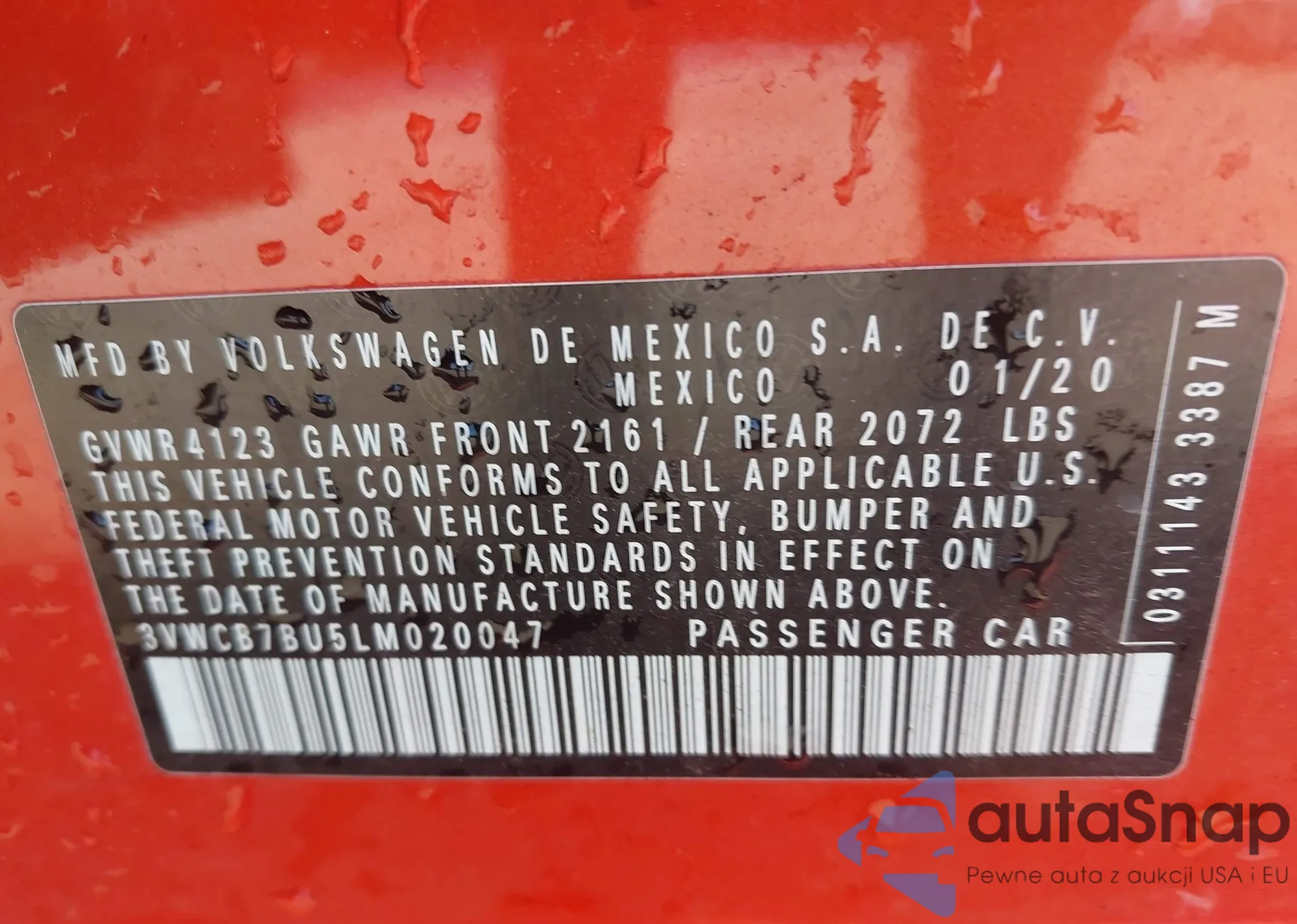 VIN: 3VWCB7BU5LM020047