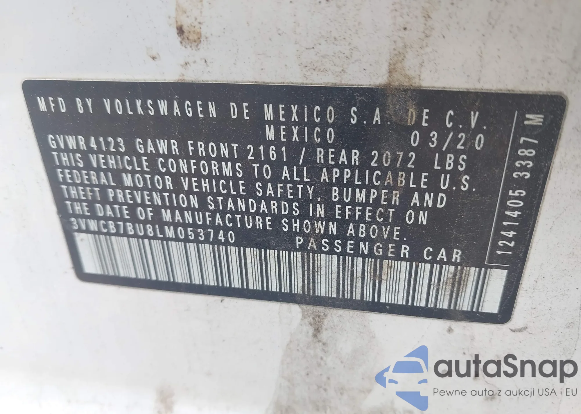 VIN: 3VWCB7BU8LM053740