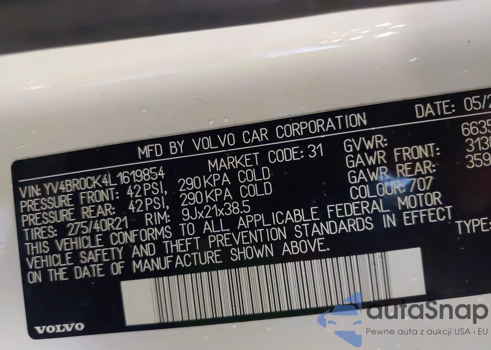 • VIN: YV4BR0CK4L1619854