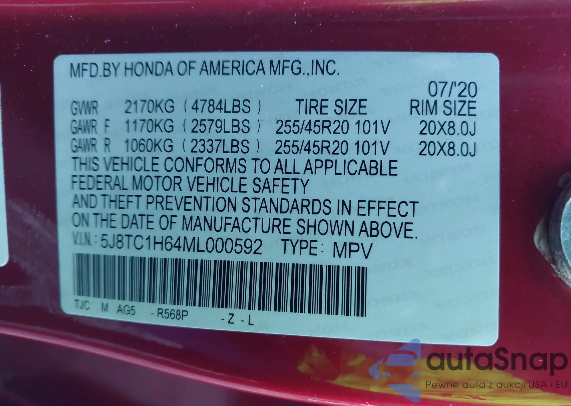 • VIN: 5J8TC1H64ML000592