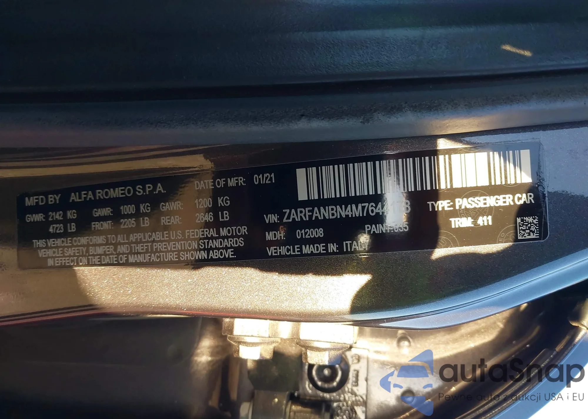 • VIN: ZARFANBN4M7644178