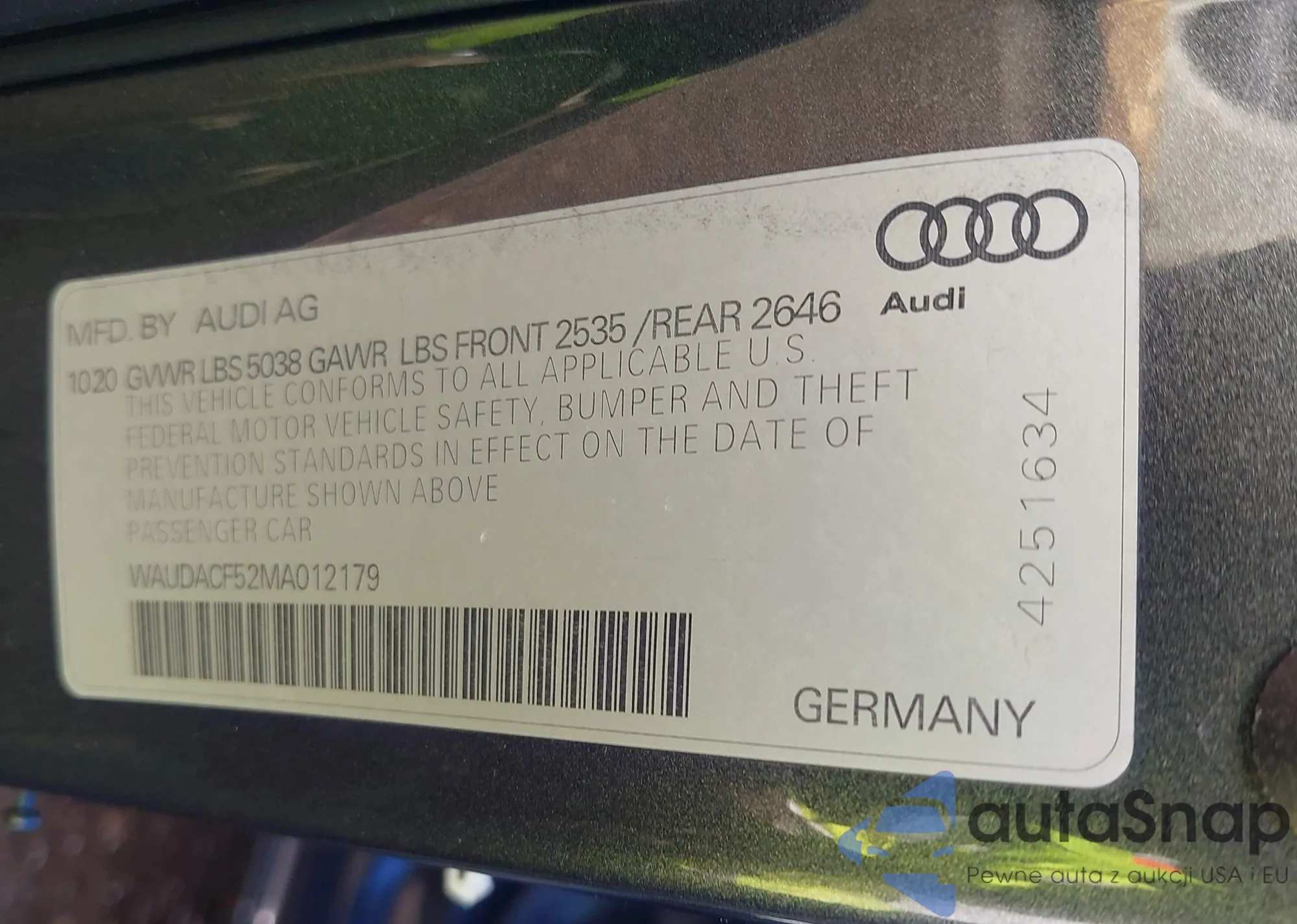 VIN: WAUDACF52MA012179