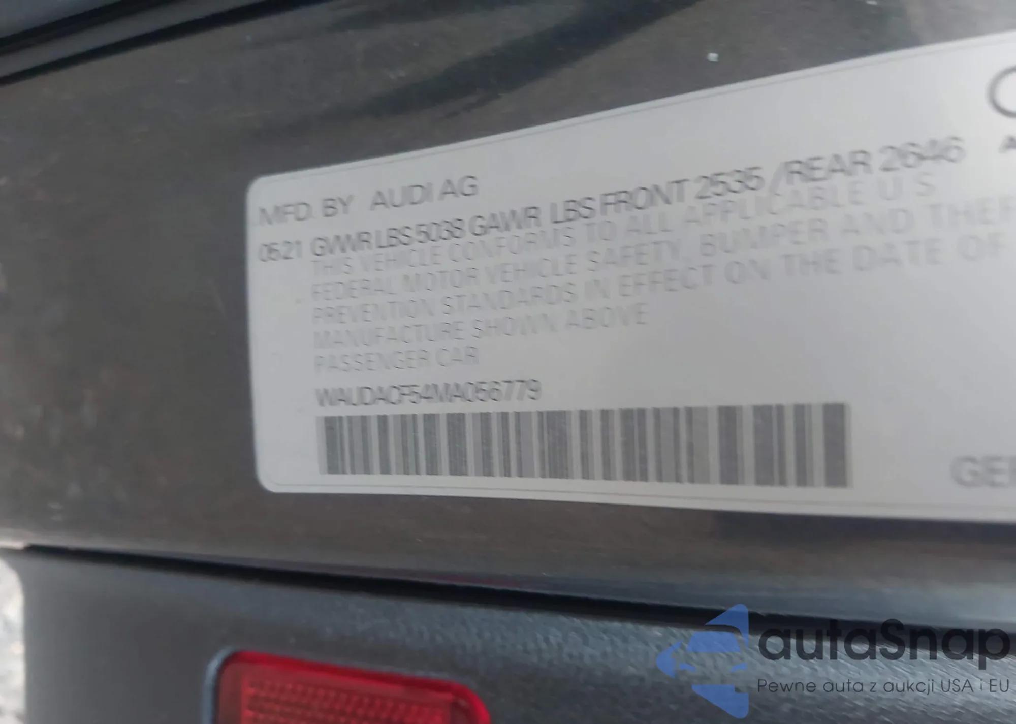 VIN: WAUDACF54MA056779